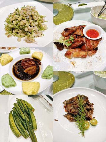 越式牛肉粒,龙井虾仁,海派红烧肉,绝味三角峰,黄油焗波龙,本帮熏鲳鱼,山楂之恋片皮烤鸭,糯米膏蟹,鲍鱼酥,本帮熏鱼配西式蛋卷,窝蛋牛肉爬草头,红豆沙小圆子,葱油北极贝裙边,红糖麻糍,本帮红烧肉,北京片皮鸭,蓝莓山药,清蒸鲥鱼,越式牛仔粒,生煎包,红豆沙汤圆