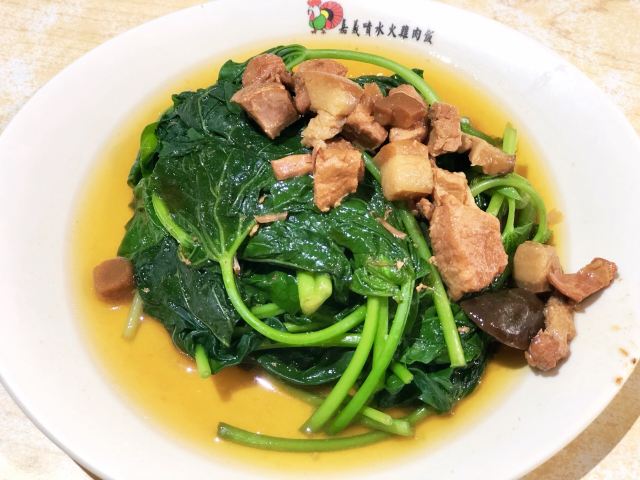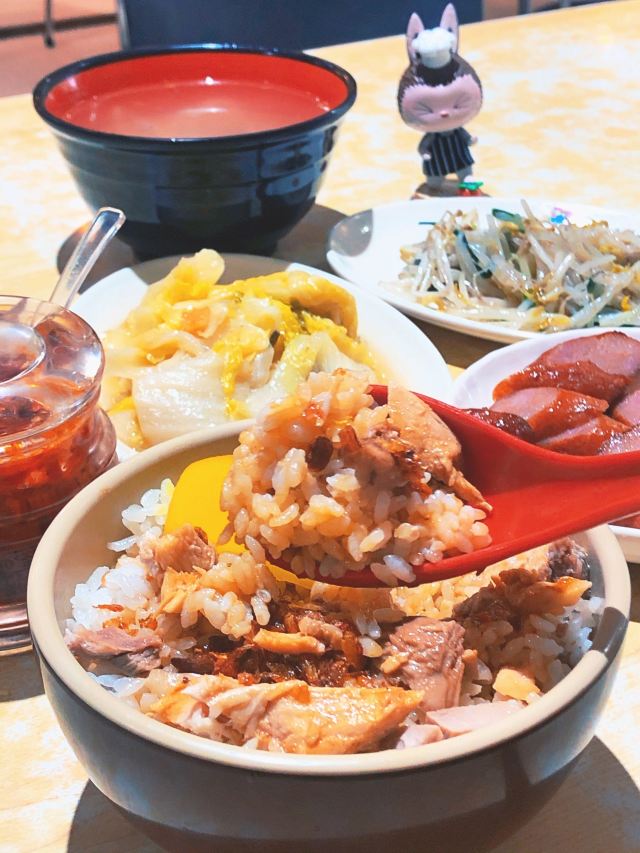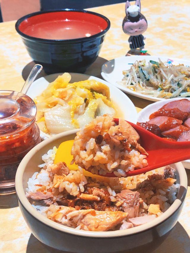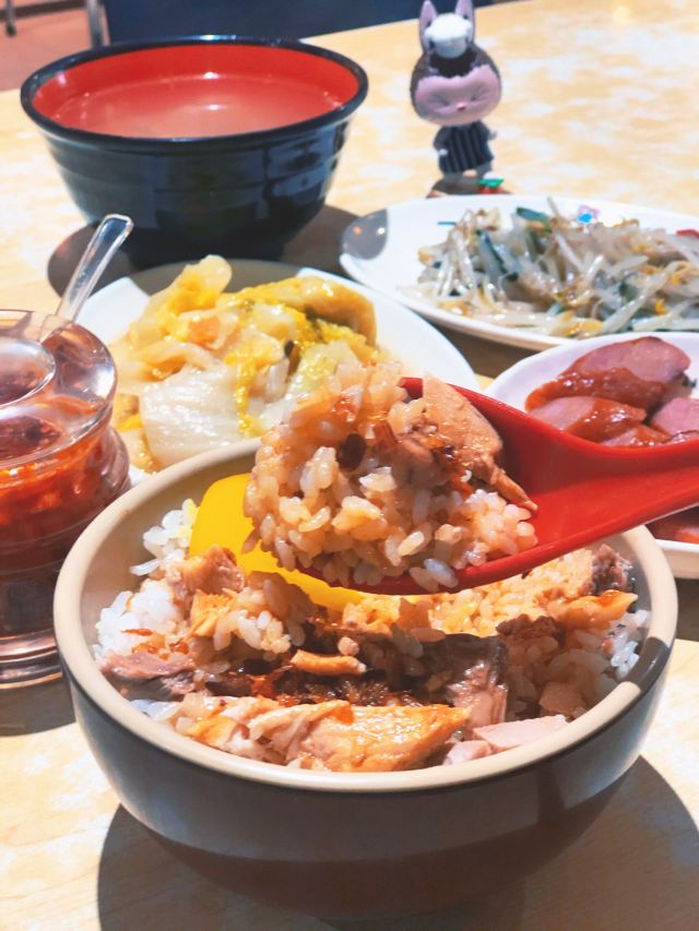 fly_me_to_the_moon☀️周末来个中式brunch吧~ 难得礼拜六我不上课老公不加班,起床后早饭都没吃,打算直接来嘉义喷水火鸡肉饭。我们对这家是真爱啊! 到店都差不多十二点了,店里客人蛮多的。 #火鸡肉饭# 招牌火鸡肉饭必点,一如既往好吃啊! #卤肉饭# 和老公都爱吃卤肉饭,这家的怎么能不尝试呢?味道中规中矩,建议还是吃火鸡肉饭。两个人两份饭光盘行动,米饭一粒都不剩哦! #贡丸汤# 很Q弹,给了三个,一人一个半,汤就是普通的味道,但我很爱这样的简简单单。 #卤豆腐# 和想象中的豆腐不同,卤味蛮重的,还不错。 #台湾香肠# 另外又加了一份大蒜,台湾香肠就是要配大蒜,一口香肠一口大蒜,导致我们下午约会在马路上都不敢讲话哈哈哈~ #火鸡肉# 另外点了一份火鸡肉,艾玛真是太好吃了!肉一点都不柴~ #猪舌# 切得比较薄,味道还是很地道的台湾味。 #烫地瓜叶# 地瓜叶很嫩,上面也撒了卤肉,看来下次卤肉饭真的不用吃了~ 点了一大桌,才110,性价比高哭了! ️停车停在隔壁小区,5块钱,不怕没位子哦!