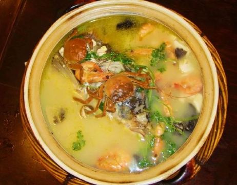 人均应130元! 6年前去过一次七宝古镇的天香楼,当时鱼头砂锅价格好像118元,砂锅里除了一只大鱼头外,还有小毛蟹2只,小虾若干只,味道 老又黄,象杂草堆,几乎全浪费了! 服务尚可,3一5个服务员扎堆站立,餐盘剩食满了叫唤换盘才换之,不主动! 总体感觉还不错!