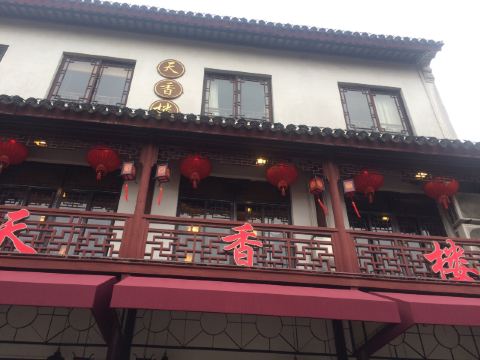 天香楼是七宝以前最好的饭店!!电影里那种!有升降机送菜的,菜味道也非常不错!!不过现在是包给外人经营了。