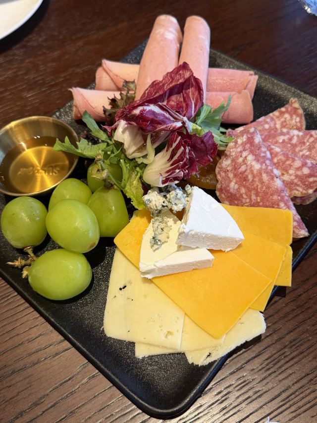 Kafer滨江壹号宝莱纳餐厅(北外滩店) 参观好舰艇来滴,餐食一般般,景还是不错滴,直接能看到三件套。目前是进去先付35元一个人,进去点单能直接抵的。三楼没开,建议到二楼拍拍景,一楼有透明板遮挡。 巴斯克蛋糕 巴斯克上有一层蓝莓酱,再加最上面蓝莓,酸酸甜甜 美式咖啡 非常烫,第一口直接被烫到,味道就很一般,35元一杯性价比就很低了 火腿芝士拼盘 一般般,青提几个都不新鲜了。