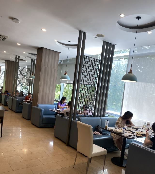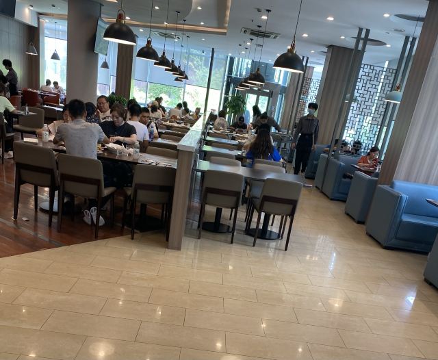 周边亭台楼阁、小桥流水。餐厅重新装修过,透明观光电梯,一楼是留学生食堂,二楼中餐厅,三楼的沙发雅座和包房,环境非常好。
