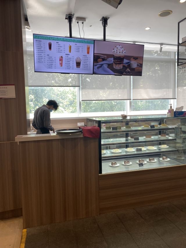 Lainey HUAN1)店面位置: 位于同济大学四平路校区内(近彰武路)国际学生宿舍楼楼下。 2)餐厅特色: 靠窗景观沙发座位可以看到校园内的亭台楼阁、小桥流水、绿荫。 3)餐饮体验: 餐厅有透明观光电梯,也有设计感十足的弯曲爬行楼梯 一楼是清真餐厅,需要刷校内饭卡,人比较多,但价格实惠; 二楼是西餐厅和星巴克,提供意面、牛排、披萨等简餐。 三楼是中餐厅,主要是本帮江浙菜,有包房和大厅。 支持扫码点单。点单后出单速度尚可 西餐厅的芝士培根焗弯筒面配有罗宋汤,面奶香满满,培根也比较多; 香烤青花鱼里有薯条、生菜、煎蛋等配菜和蘸料 法式南瓜汤南瓜味道比较浓郁; 水果披萨趁热吃比较香甜。 适合学生自选和校园访客,价格相对实惠。