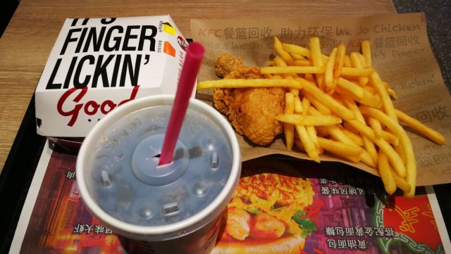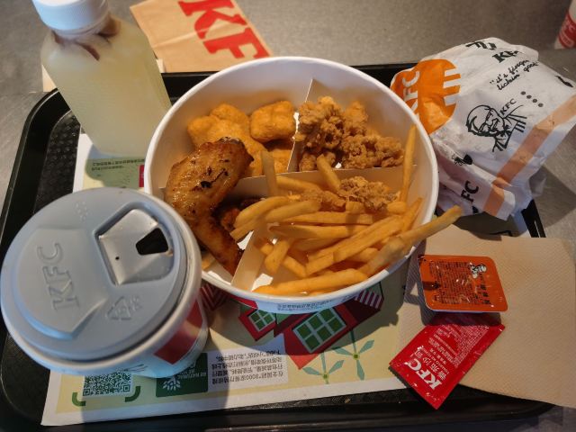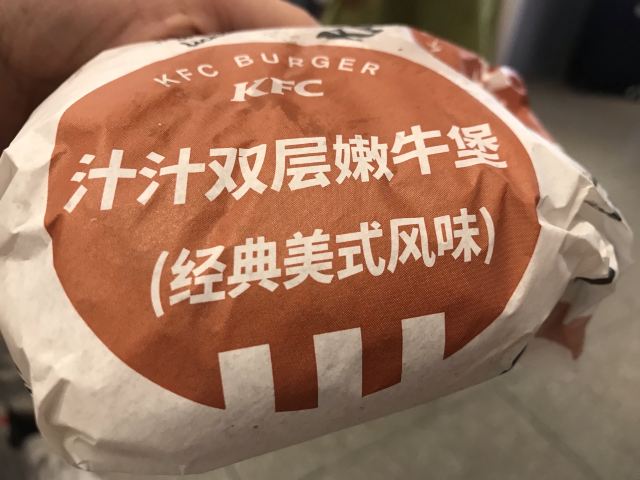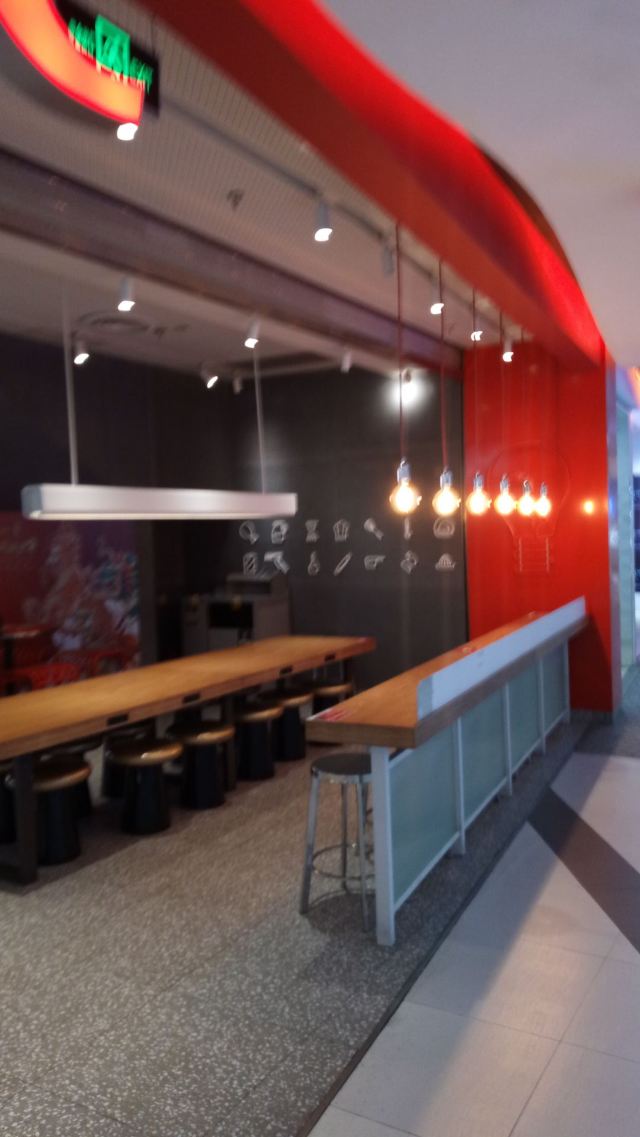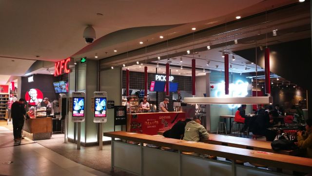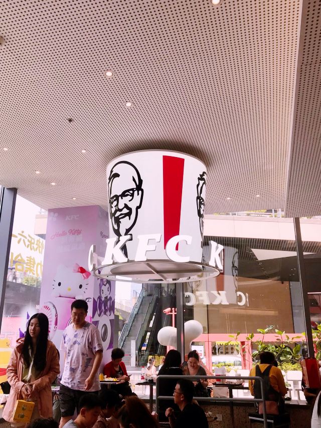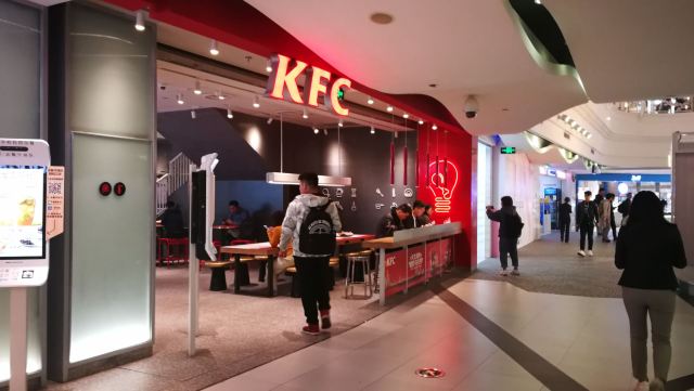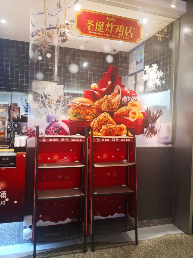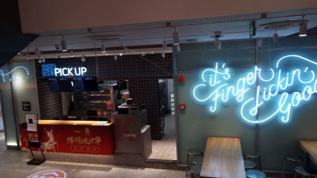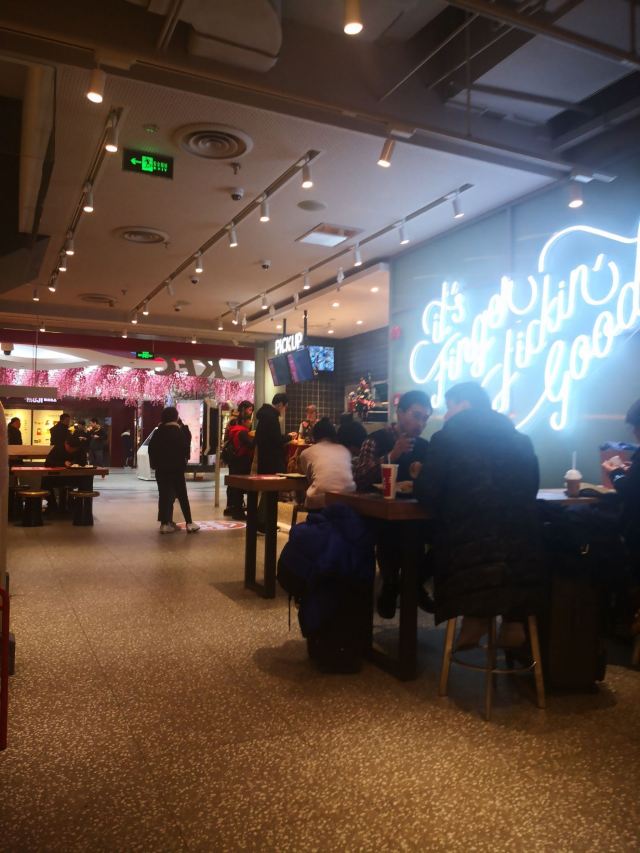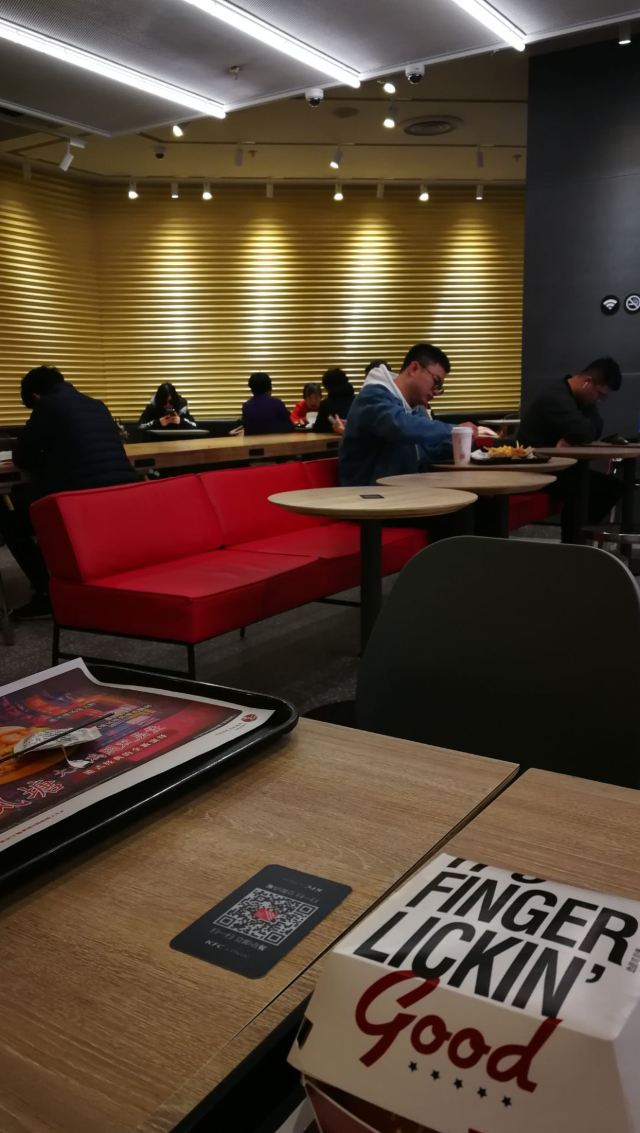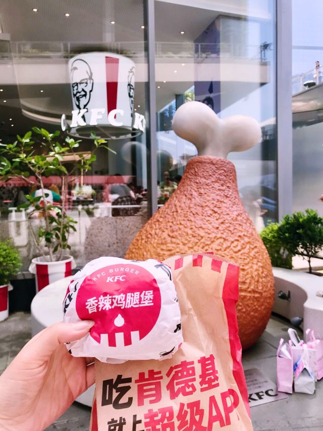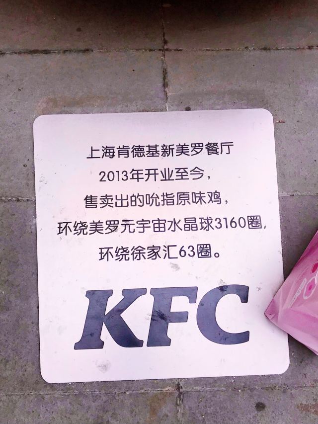 KFC (xinmeiluo)携程上积分兑换的肯德基香辣鸡腿堡汉堡券,在徐家汇美罗城一楼的肯德基(新美罗店)使用,刷餐券二维码即可使用,非常方便。这家店开业至今正好十年,销售业绩也是非常出色,售出的吮指原味鸡可以环绕徐家汇63圈……