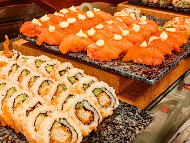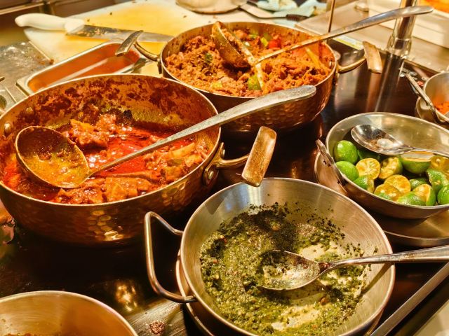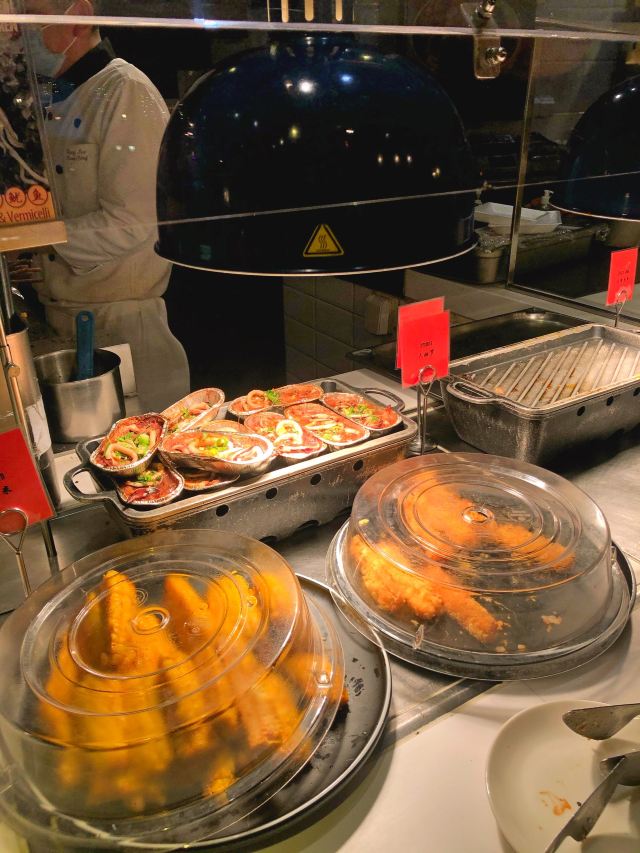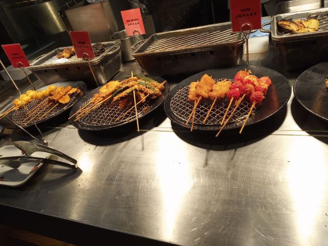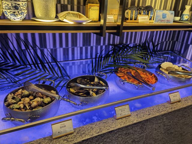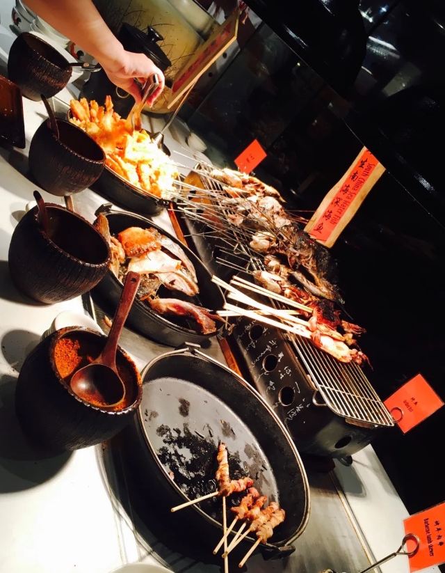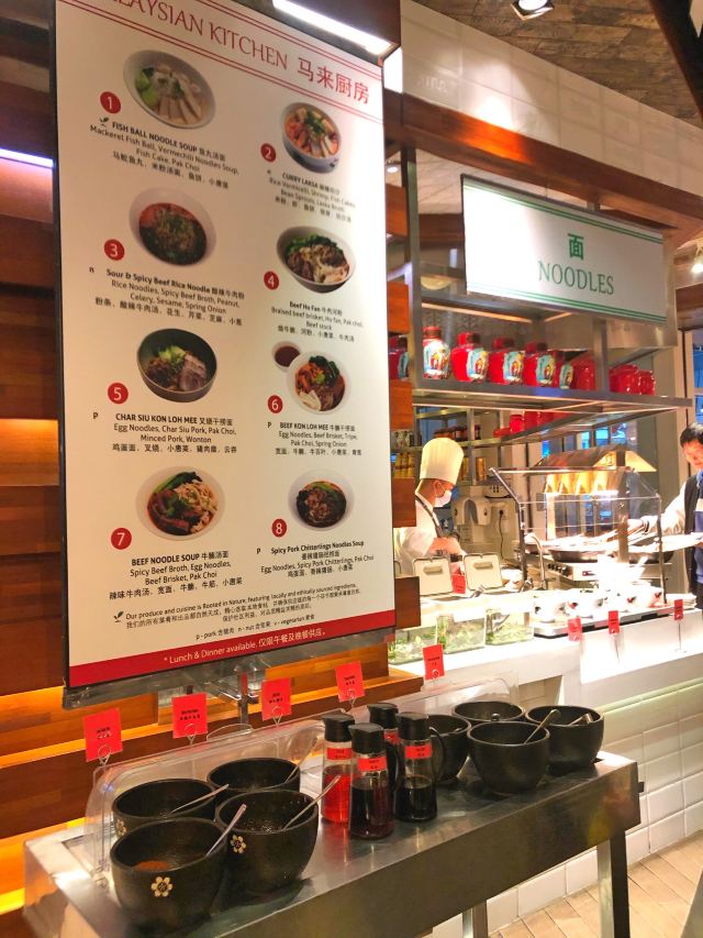 澳洲和牛排,厚切三文鱼,红柳枝羊肉串,帝王蟹脚,海鲜咖喱叻沙,芝士蛋糕,甜点,水果,寿司档,冰淇淋,时令小海鱼刺身,烤澳洲牛扒,熔岩三文鱼寿司,羊肉串,时令鲜疏天妇罗汇,精选laksa,烧烤,潮汕狮头鹅,烤羊排,咖啡,海鲜冬阴功汤,蒜蓉粉丝蒸扇贝,榴莲铜锣烧