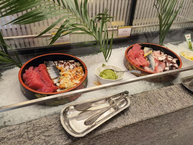 Sasa0828🏖之前吃了他们家的周末下午茶🧁感觉性价比很高 特地问了一下店员晚市自助餐的价格 原价💰347/位 正好最近有团购活动🍵算下来每位只要💰312 价格适中💙晚市自助餐的品种选择性很多 让我特别惊讶的是他们家的三文鱼🐠 这个厚度你们一定要亲眼去看看👀吃了那么多家自助餐🌈还是第一次看到这样的厚切三文鱼🦋食材新鲜 用料上乘 各种海鲜刺身🦐牛羊排🐮马来西亚菜🌿中式菜🌸刀鱼馄饨🥟海胆水饺🍭各式烧烤🍢甜品🍬冰淇淋🍦不得不说✅女孩子真的是有两个胃 无论吃的有多撑🤩总有一个胃是留给甜品的👻 🍧甜品类 各种精美蛋糕 冰淇淋 布丁等等差不多有十几个品种 🍒水果类 荔枝 芒果 红毛丹 杨梅 橙子 西瓜 火龙果 小番茄等等 总体吃下来性价比还是不错的 服务态度也很好 这样品质的自助餐我愿意来N多刷‼️‼️‼️