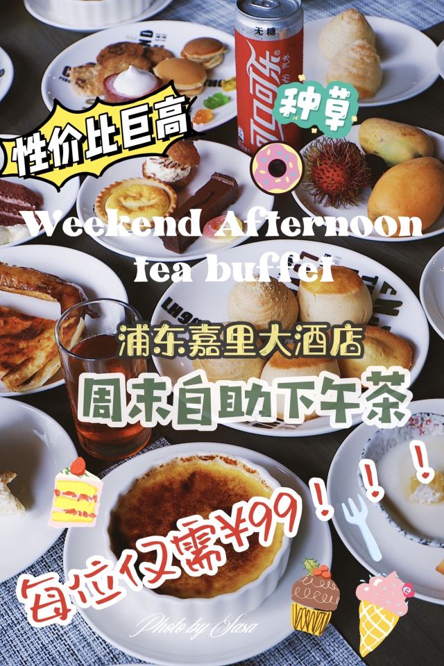 Sasa0828魔都惊现性价比巨高的酒店下午茶‼️‼️‼️ 周末和朋友想找个地方喝喝下午茶聊聊天 看到浦东嘉里酒店新推出的下午茶只要💰99 ⏰时间→5/19~11.30每周六周日下午2:30-4:30 🍃地址→浦东嘉里大酒店The Cook自助餐厅 🌈内容→16款招牌甜品+4款当季时令水果+3款主厨精选三文治+6款精选热饮+6款特调冷饮 如果喜欢喝酒的话只需另加💰30 葡萄酒 鸡尾酒 自酿啤酒三选一 🧁甜品种类非常的丰富 点心类的基本都是现做现烤 特别喜欢他们家的榴莲新品 榴莲蛋糕外型做的非常的逼真 猫山王榴莲流心酥也是美味到不行 💕无论是甜品还是饮品 颜值都很高 味道也都在线 人均两位数就能吃到这样的下午茶简直就是捡到宝了 ✅大家去之前最好电话预定一下哦✅