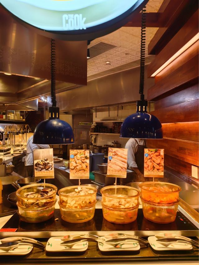 作为五星级酒店内的自助餐厅,The Cook厨餐厅的出品自然是毋庸置疑的。餐厅有11个开放式厨房,一个西点展台和室外露台卡座,囊括从中式烹饪小食到亚洲面点、日式刺身、法式糕点、西式佳肴、亚洲烧烤、鲜磨咖啡、佳酿乳酪等各类国际美食美味,可以满足来自不同地域客人的需要。