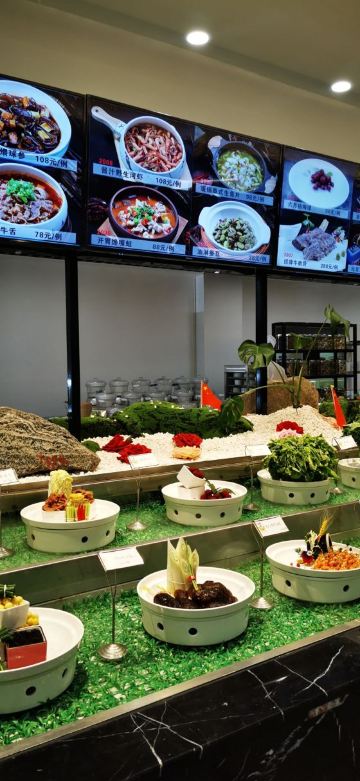 特色花雕鸡,元宝虾,芥末味鲜果虾球,招牌牛肋骨,砂锅生焗拇指包,鱼头汤,小土豆,印度葱油飞饼,羊排,水煮鱼,铁板茄子,阳光麻糍,野生雄魚頭,藕,现烤肥牛,老北京烤肉卷,虾球,海蜇头,特色麻球,生煎包,生态养生鸭,现做腐竹,大麻球,烤鸭