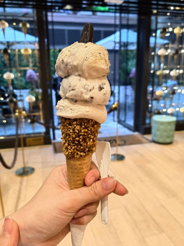 一家超级网红的冰淇淋兼巧克力店,好多人排队,我也去凑了个热闹。我选的是中号冰淇淋,可以选三种不同的味道。店面服务不错,装修不错,特别受年轻人喜欢。冰淇淋的话口味还可以吧,我觉得还是有点偏甜,下次尝尝巧克力的味道。