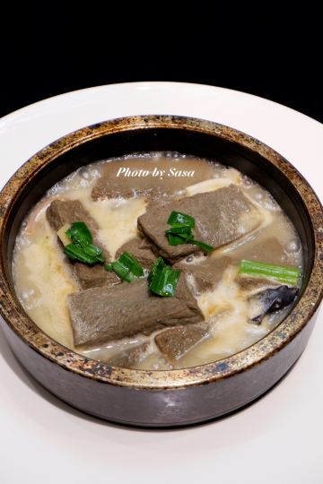 Sasa0828最近被朋友和同事疯狂安利了一家粤菜餐厅 大家都知道 粤菜可是我最喜欢的菜系之一 这家店不但环境一流 价格还非常的亲民 环境:这家店在淳大万丽酒店的三楼 占地面积非常的大 里面设有好多包间 大厅地方也很大 看上去非常的明亮宽敞 装修的富丽堂皇 格调很高 店名:富淳 坐标:迎春路719号淳大万丽酒店三楼 营业时间:11:00-14:00 17:00-21:00 交通:地铁9号线杨高中路站3号口出 人均:¥180 鱼羊鲜 冬天必吃的一款汤品 里面放的食材非常的丰富 “鱼腹藏羊”即为鲜 汤底是用鲫鱼汤熬制出来的 里面的肉是山羊肉 量非常的大 羊肉放的也非常的多 汤味鲜美 肉质鲜嫩 没有膻味 喝在肚子里感觉既暖心又暖胃 这锅汤是放在一个“小炉灶”上的 这样就不怕在用餐过程中汤会冷掉 从而影响口感了 富贵荷香鸡 这个可是店里的招牌菜品 大厨会亲自给我们演示这个荷香鸡的吃法 上来的时候外型看上去居然是个超大的菠萝包 掰开菠萝包的外皮后就能看到香气十足的荷叶 掰开荷叶后就能看到这一整只鸡啦 菠萝外皮都是现烤出来的 口感酥脆 非常的好吃 鸡肉口感鲜嫩 带有汁水 肉质一点儿也不柴 吃在嘴里还带有淡淡的荷叶香 味道很是特别 官燕绿豆糕 平时吃的绿豆糕里面基本放的都是豆沙 而他们家的绿豆糕里面放的居然是雪燕 简直太贵气了 造型做的非常的立体精致 一看就让人非常的有食欲 里面放的雪燕的量也不少 糕体口感香甜绵软 雪燕色泽晶莹剔透 口感丝滑 真的无敌好吃 推荐推荐 个人用餐感受 这家粤菜馆真心不错 服务周到 环境优美 价格不贵 无论是朋友家人聚餐又或者是即将到来的年夜饭 这家都是一个不错的选择 菜品摆盘好看 口味在线