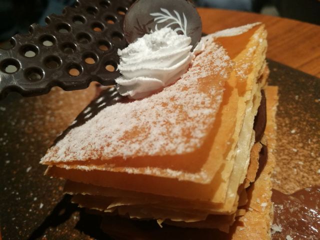 环境超棒的一家餐厅[得意]进口在金陵东路这一边,电梯到3楼再经过楼梯走下来~可能是历史保护建筑的关系吧也不能改结构,餐桌边就能看见东方明珠~ |扒香草羊里脊^羊肉品质很棒,又鲜又嫩肥瘦相间,有用盐事先腌过所以很入味~底层的酱也是画龙点睛,吃得出来有土豆泥,黄油,芝士和少许黑胡椒~拌着边上的蔬菜一起口感平衡的很好~ |松露酱芦笋炒澳带^很清新爽口的一道菜~芦笋和澳带吃的出都是精心挑选过的,咬下去都有新鲜的原味汁水~嫩鲜~松露酱更增添了一份浑厚的香气 |榛子巧克力拿破仑^精致的甜品~一片片超薄的脆皮撑起一块巧克力堡垒~松脆之中伴随巧克力的浓香,很有意大利甜品调调,底下还铺满了榛子巧克力酱~