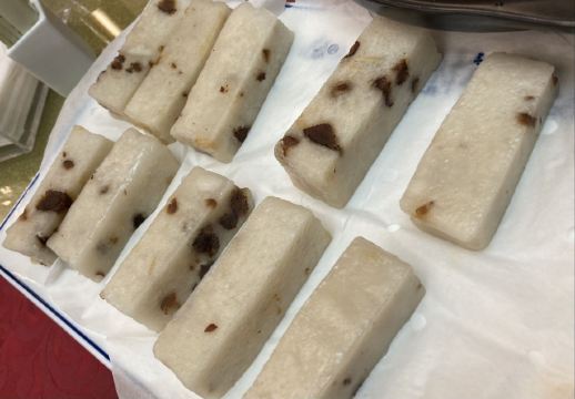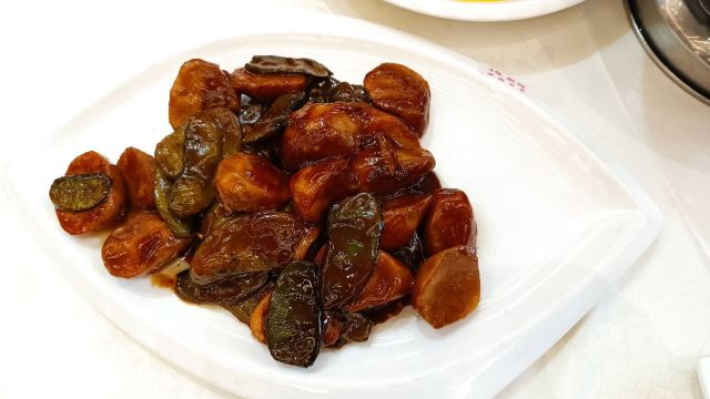 红烧羊肉小份,糖醋小排,白切鸡,杏鲍菇牛肉,干煎馄饨,椒盐崇明糕,金瓜丝,山药鸡,蛋饺,清蒸白水鱼,崇明瀛糕,红烧羊肉,酒糟鱼,年糕蛏子,塔菜冬笋