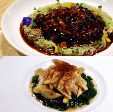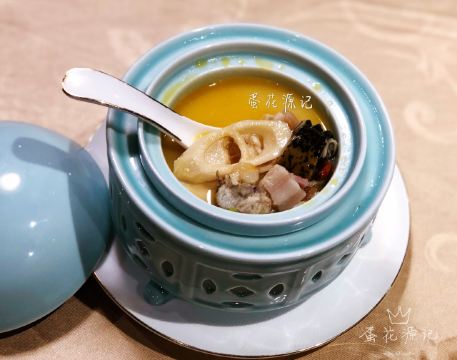 蛋花食游记阳春三月,万物复苏,桃红柳绿鳜鱼肥的好时节,也来圆苑家的升级品牌——鼎苑一品春菜,坐落于外滩新地标,[环境]典雅大气,包房古典优雅,可临江而望,别有一番景致~ 冷菜的「上海鱼冻」老底子的本帮菜,河鲫鱼拆骨存肉,汤汁自然成冻,店里很有新意地用鱼的模具装盘成型,入口一抿鱼鲜散发到口腔四处,此刻好想问店家要一碟醋,一碗泡饭,儿时的回忆浮上心头。 「山楂红酒鹅肝」红酒为底,酝酿而成的鹅肝,搭配山楂和拿破仑酥皮增味并且开胃解腻,很有特色,入口绵滑,如生巧克力般~ 「上海酱香双拼」酱鸭+酱油肉的组合,老上海餐桌上常备,酱鸭和五花肉酱油泡后风干15天,然后如此反复一个月而得,酱香入味。 「话梅甜虾」在虾肉上提升了品质取甜虾腌制,甜上加鲜,摆盘也很好看。用话梅浸渍后更加入味,相比一般的醉虾更爱这一道。   「红肠土豆色拉」非常有家的味道,用的熟识的三林红肠,摆盘也很好看。家里餐桌上经常会吃到,小时候的回忆。 「心里美海蜇丝」用了红色的白萝卜,海蜇丝也很脆,口感很棒。 「樱桃肉」红烧肉色泽莹亮鲜红,一份五花肉下了半斤车厘子下去天然着色,五花肉也很讲究,靠近带骨的地方,口感很糯不柴,吃口鲜甜,脆饼现做的。搭配着一起吃口感更加好。 「清炒三虾」店家很用心地取了新鲜和干的凤尾河虾子,干虾子下锅后有爆珠的感觉,搭配在一起口感很好,虾脑的产量珍贵,再加上蟹粉融合一起再蘸醋食用起到了极好的提鲜作用。 「黑松露刀鱼脯」当季最鲜美的食材,刀鱼拆肉伴着虾子打成鱼胶,加淀粉翻炒,鸽子蛋去蛋黄,用松露增香。 「烧汁雪花肥牛」按位上的肉品,勾芡浓稠品相好看,牛肉味浓郁。吃了鱼虾,正好来道肉品调节下。 「虾籽春笋」春色满园不必解释~虾籽磨得很细洒在春笋上,好看又增味,下面的草头也是又嫩又鲜美。  本场最佳当属「江鳗」野生的江鳗属于当季的食材由手艺精湛的大厨天然浑成不费吹灰之力,一道美馔就摆在眼前,加以陈醋去腥提味,轻轻一珉,肉就化入口中。 汤品是当季的「河笃鲜」10条鲫鱼熬成奶白色的汤底,再加入咸肉鳝筒,小龙鱼以及蟹粉,笃定是鲜美啊。  点心是「麦乳精鸽子蛋」用分子料理做成如鸽蛋般的形状口感像蜜瓜和芒果的融合体。汤丸很有特色,馅料用麦乳精做成,儿时回忆满满~  甜品「清艾酒酿圆子」太和时节,口口吃出艾草的清香,本身我就很爱吃青团,第一次尝试和酒酿的搭配,很创新,酒酿里加了黄桂花,淡淡的桂花香,锦上添花。