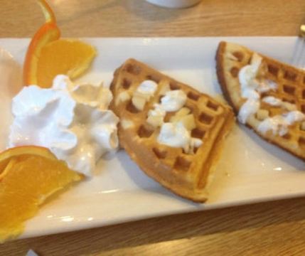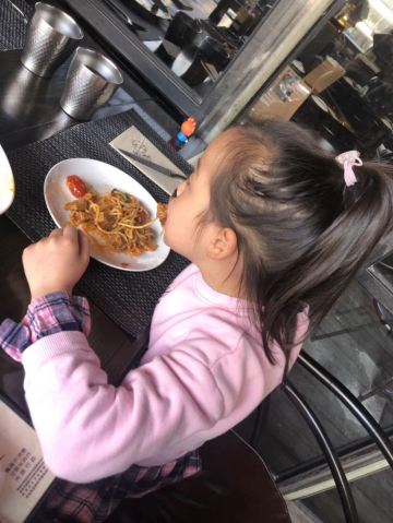 布丸子披萨好吃,芝士味好足,上面一层生的火腿片,卷起披萨一口咬下去,布丁有淡淡的柠檬味,浓尔不腻,椰子雪巴也不错,里面有椰丝,生牛肉沙拉,夹着厚厚的有点咸咸起司