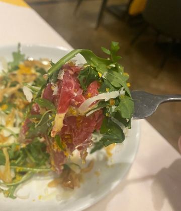 DA·MARCO这家已经开了20年的店,其实有个雅号:🇮🇹意大利领馆后厨房,可想而知它的地位了。最近超爱意大利菜,真的必须打卡这家啊! 🍞餐前面包 喜欢吃硬硬的Grissini面包棒,小的时候不喜欢,越长大越爱上这种简单的快乐 🥗猫头鹰色拉Carlino Salad 蔬菜油醋鸡蛋以及好多片帕尔马,就是这个干净的味道,味蕾打开 🍆意式奶酪茄子 Eggplant Parmigiana 个人非常喜欢这个菜,像千层面似的铺满了一层奶酪,热乎乎的入口,烤到软透的茄子,是真的入口即化 🥔自制意式土豆饺子Gnocchi 这里的口感偏绵软,一口一个当心烫 🍕生牛肉披萨Pizza N4 Beef Carpaccio 🍕烟熏三文鱼披萨 Pizza N9 Salmon 我发现这里的披萨价格很合适88元的,如果几个朋友来推荐点上面2种披萨!生牛肉那款有很多芝麻菜,三文鱼上面好多奶酪,口味很不同,一定试试啊~~ 🥘慢炖小牛膝骨 Ossobuco 长时间炖煮后的牛肉软烂好切,十分入味,拌上一口意大利饭,十分满足,真是太爱了 说真的能开这么久肯定有两把刷子,推荐给爱吃意大利菜的朋友们