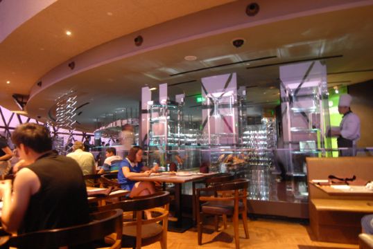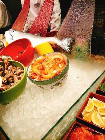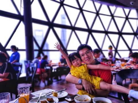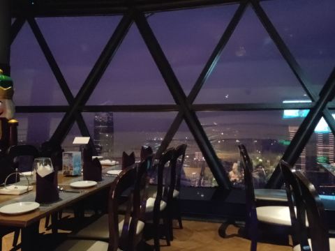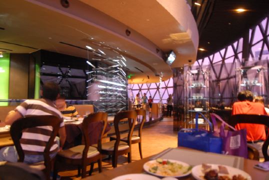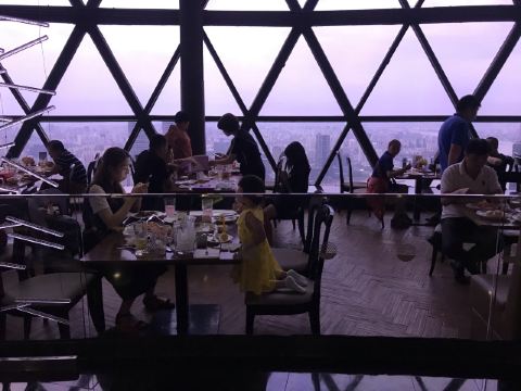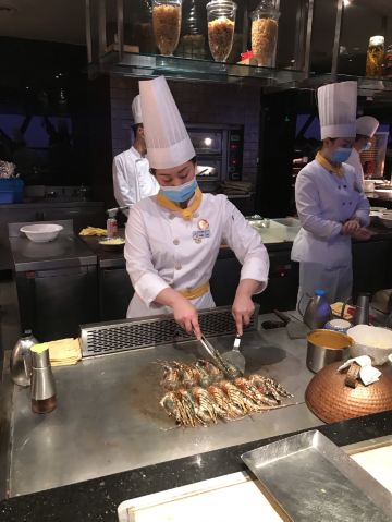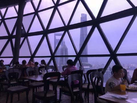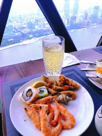 Oriental Pearl Sky Revolving Restaurant公司聚餐特意提早一天预订及购买了东方明珠旋转餐厅的票,该票含午餐和参观门票,感觉性价比还挺高的,可以先在260几米的高处俯瞰和浏览上海城市美景,再走下楼到旋转餐厅就餐,旋转餐厅装修的比较高大上,自助餐的形式,有各色各地菜肴,如三文鱼,牛羊排,蜗牛,南美对虾都是不错的选择。