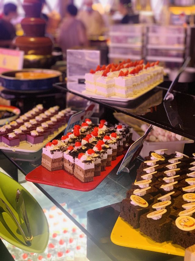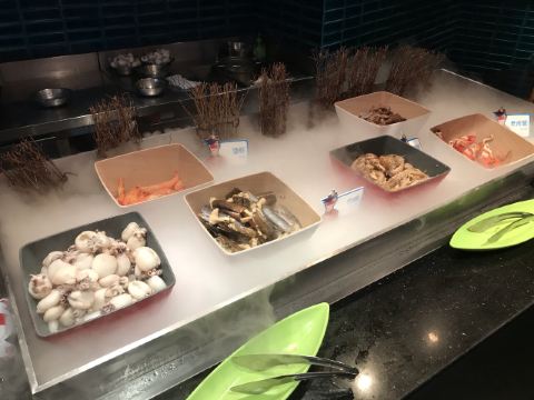 法式蜗牛,烤羊排,芝士焗小青龙,铁板牛肉,鲍鱼捞饭,茄汁明虾,西瓜,印度飞饼,水果,冷饮,白金枪鱼,芝士蛋糕,濑尿虾,帝王蟹,抹茶蛋糕,红烧肉,铁板牛排,三文鱼,爱茜茜里冰激凌,烤南美对虾,佛跳墙,Ice Talk意大利进口冰淇淋,小馄饨
