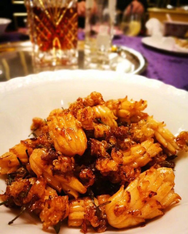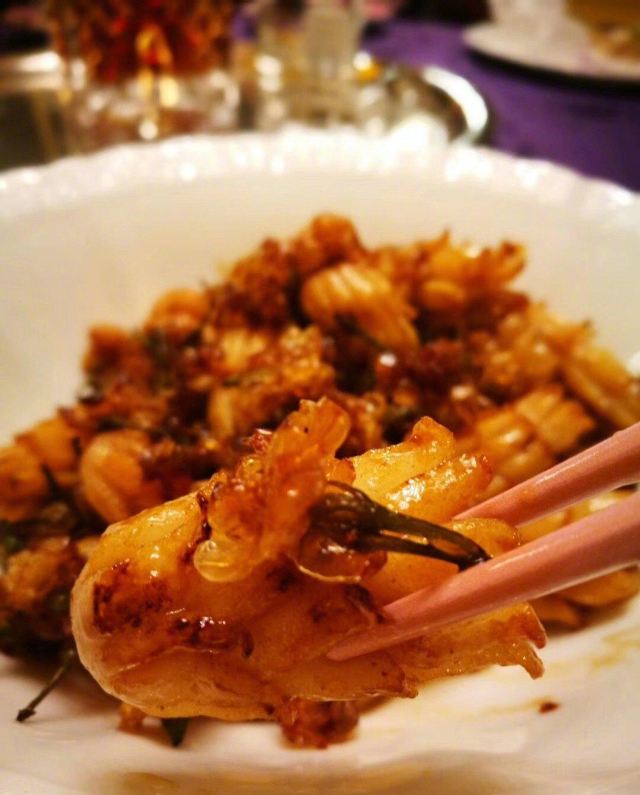 吃遍上海[糖果]梅龙镇 梅龙镇是上海的老字号了,记得某年年夜饭就是在这里吃的   [婴儿]推荐菜品: [礼花]虾球双拼: 原味虾仁和金沙虾球两吃。金沙的是虾球外面包裹了一层咸蛋黄 反正咸蛋黄做什么都很好吃,虾仁本身就Q弹鲜美 加咸蛋黄后更是色香味俱全了   [礼花]油鸡 色泽鲜亮,肉质嫩滑,咸淡相宜, 有点粤菜的风味。 清淡却又入味   [礼花]干锅牛蛙 牛蛙炸得比较透,并不油腻, 配菜的藕片洋葱等颜色很好看又很下饭   [礼花]草头猪肝 草头和猪肝都做得粉嫩,这是典型的本帮菜 上海人从小就爱这一口   [礼花]豆沙锅饼 这款外面没吃过,皮外裹着丰富的芝麻粒 内里绵软的豆沙馅 甜食星人的最爱 我吃了好几块呢   [礼花]糖醋大黄鱼 过节的时候点一条金澄澄的大黄鱼能增添喜庆的气氛 美中不足就是等汤和甜品主食都吃完了才上的桌 只好打包带走啦   [婴儿]环境: 暗黑的风格还是挺喜欢的,大堂的话餐桌之间离得比较近 没办法,寸土寸金的地段不容易吖   [婴儿]服务: 人多的时候有点忙不过来的感觉   [婴儿]印象:适合家庭,朋友聚餐