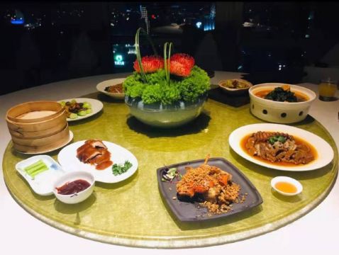 砂煲黑蒜银鳕鱼,叉烧酥,鲍鱼盅,榴莲酥,鲍汁花菇扣鹅掌,白菜笋丝炸春卷,金秋蟹粉捞燕窝,日式烧汁煎羊排,笋尖鲜虾饺,鲍片佛跳墙,甜品,橙汁,雪媚娘,甜点,清蒸东星斑,原味豆浆蒸笋壳,香芒杨枝甜甘露,明虾球,海皇虾饺,港式深井脆皮鹅,鸿运脆皮文昌鸡,流沙包,农家蒜泥拌茄条,日芥沙律明虾球,黑椒珍菌和牛粒,XO酱广式蒸凤爪