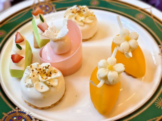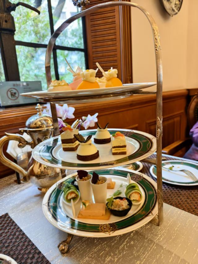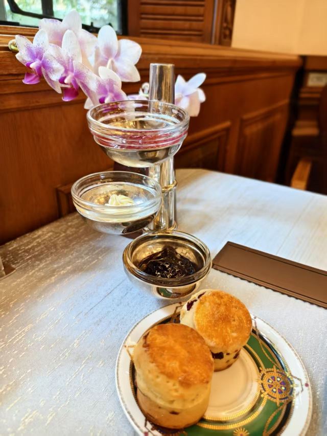 zh70午后的马勒别墅,像一枚被时光摩挲温润的琥珀。我特意选了临窗的位子,好抬眼便能望见那童话般的尖顶与爬满老墙的常春藤。银壶里的玫瑰花茶正袅袅地散着香气,这无咖啡因的体贴,很是妥贴。 三层点心架端上来,是那种上海人讲究的“小乐惠”。司康饼还微温,奶油打得蓬蓬的,还配了樱桃、蓝莓酱;樱粉礼悦甜心泛着柔和的釉色,像少女的胭脂。各色点心颜值在线,咸甜适宜,不油不腻,分寸拿捏得刚刚好。 是了,吃什么本不打紧。要紧的是这每年三月的约定,像在时光长河里系下一个温柔的结。 窗外的斜阳正巧掠过彩色玻璃穹顶,这一刻,连这座见证过战乱与重生的老房子,也仿佛温柔地屏住了呼吸。
