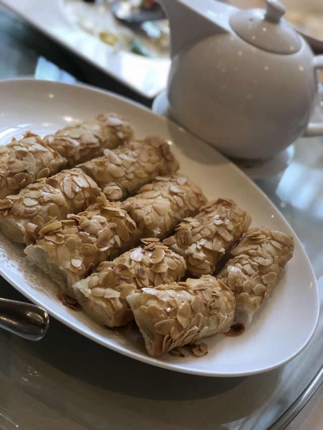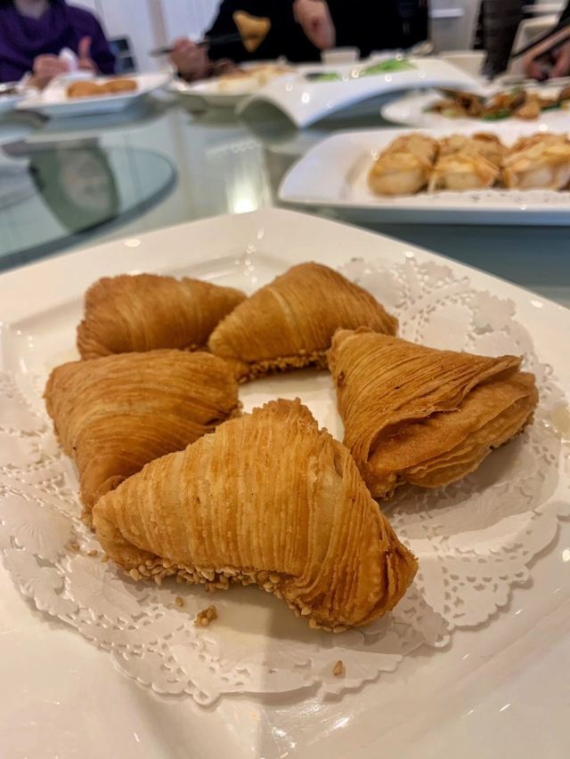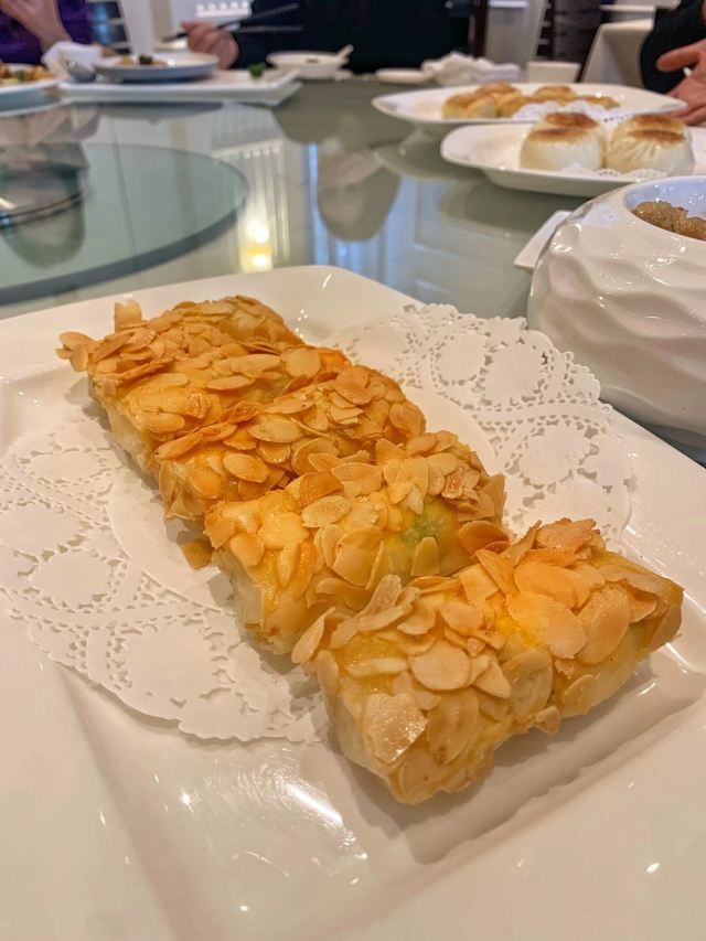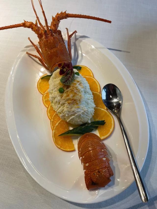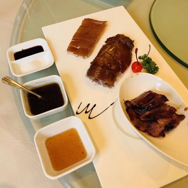 西杏炸虾卷,脆皮乳鸽,上海熏鱼,黑椒汁牛小排,笋壳鱼,小青龙金蒜蒸,蒜泥小青龙,飘香榴莲酥,XO青椒炒带子,蜜汁叉烧酥,蒜香牛肉粒,杨枝甘露,蜜汁黑豚肉叉烧,葡式燕窝蛋挞,生煎包,小青龙粉丝煲,天鹅酥,核桃玫瑰山药糕,潮州卤水拼盘,膏蟹粉丝煲,手撕盐焗鸡,清蒸笋壳鱼,清炒胜瓜,水晶虾饺皇,芒果布丁
