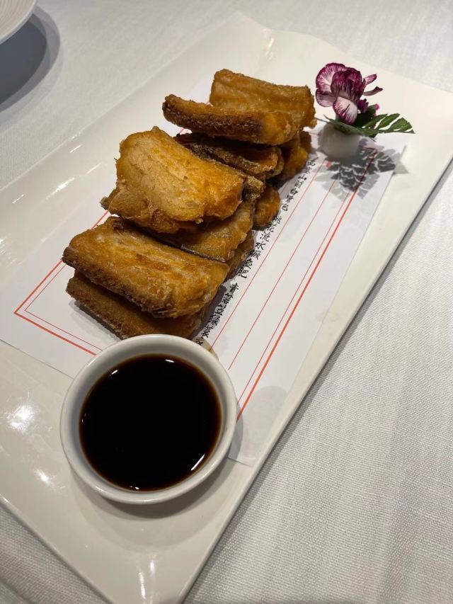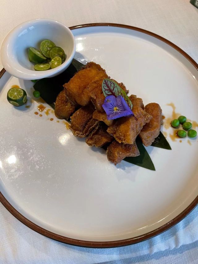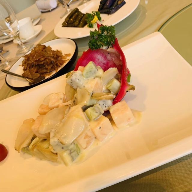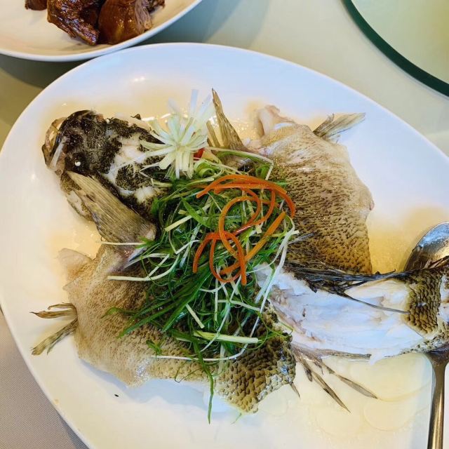 c-z开在公园里的餐厅,环境自然是非常优美,包房也是相当的大,分就餐和聊天二个区域,还带有阳台。 推荐东星斑,鱼新鲜,蒸的到位,味鲜美。 鱼头煲也是一道美味价廉的不容错过的美食。 炭烤银鳕鱼很好吃,但是就这小小的三块是三份哦,564大洋,贵! 清炒胜瓜就是广东的一种丝瓜,比较清爽的口感,78元,有点不值。 炒豆苗的确不错,用料好,口感好,108元,也贵,还多算了一份,一次飞单。 鸡汤百页包不推荐,9个108元,味道一般。 总结:环境好,菜品味道没有很惊艳,量少,价格贵,摆盘也不是很漂亮,包房人均最低消费500,服务虽然还是比较好的,但多收一个菜的钱扣一星。
