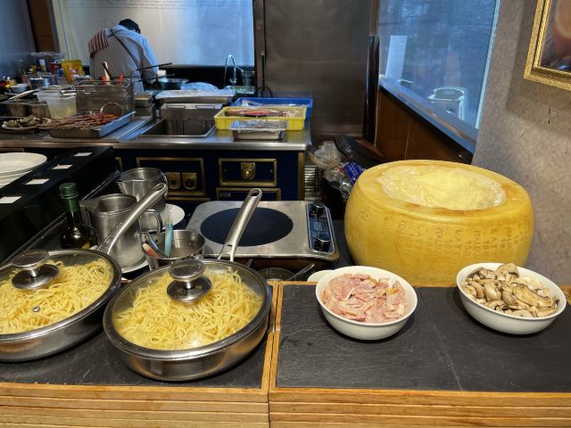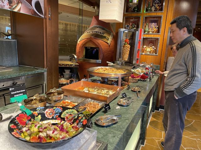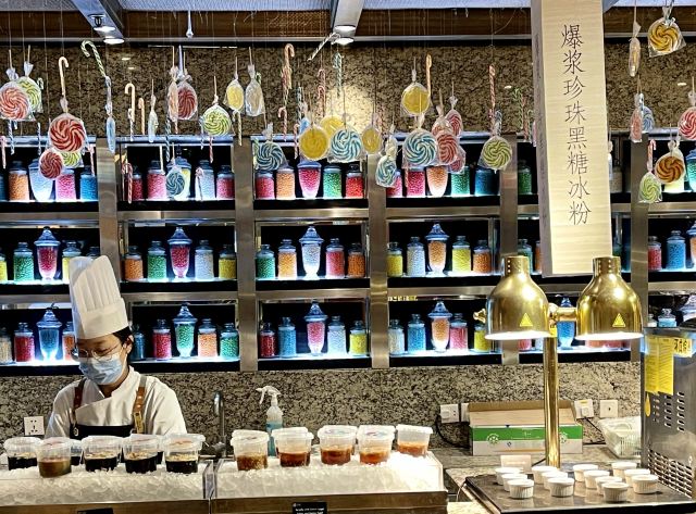 Pudong Shangri-La·Yi Cafe今天来上海浦东香格里拉酒店吃自助餐。 环境:优美舒适,干净整洁卫生。 服务:服务员非常体贴入微。主动帮你解决问题。很喜欢这里的给你感觉像自己的家🏠 各种风格搭配的美食:中式 西式法式,例如:不同口味的寿司🍱爱吃寿司的亲们可以来品尝一下。 都是我的最爱😍尤其是最最最爱的海鲜 。三文鱼🍣 虾 扇贝等等, 酒水有点局限了。免费的只有只有茶 ☕️咖啡 雪碧 可乐 芬达。额外增加点小酒,例如鸡尾酒 🍹 红酒🍷会更加完美。爱吃牛排的你,可以来这里吃。有鸡肉,牛排 羊排 。还有烤猪 美味😋美中不足就说我今天感觉有点冷。🥲各种美食等你来吃👍