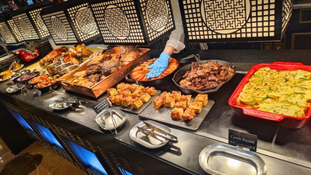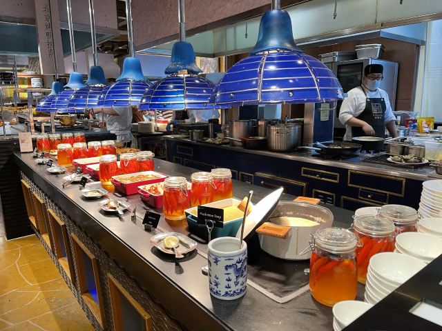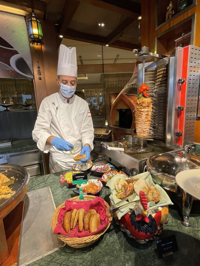 上海数一数二的五星级酒店自助餐,以全日餐厅的理念,为您奉上环球美食和当地特色美味。11个开放式档口供应中式菜系、西式美肴、东南亚特色、日式料理和欧式美味等,互动式用餐体验让你感受现场烹饪的视觉盛宴,不论是情侣约会或闺蜜聚会都很适合。