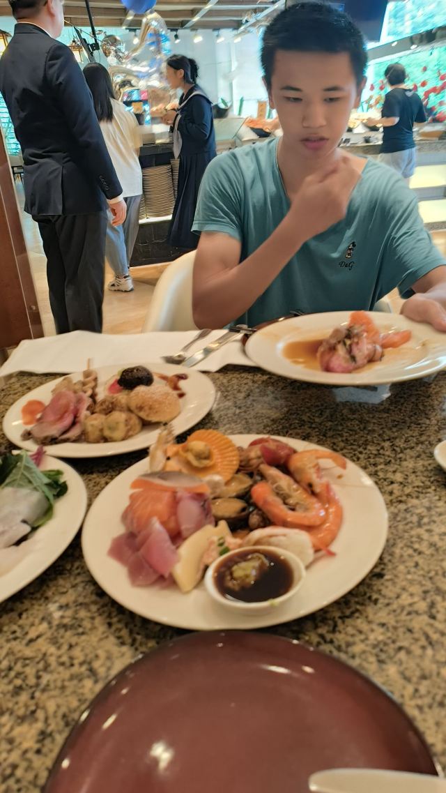 YoYo_6X2Y0E6W今天来上海浦东香格里拉酒店吃自助餐。 环境:优美舒适,干净整洁卫生。 服务:服务员非常体贴入微。主动帮你解决问题。很喜欢这里的给你感觉像自己的家🏠 各种风格搭配的美食:中式 西式法式,例如:不同口味的寿司🍱爱吃寿司的亲们可以来品尝一下。 都是我的最爱😍尤其是最最最爱的海鲜 。三文鱼🍣 虾 扇贝等等, 酒水有点局限了。免费的只有只有茶 ☕️咖啡 雪碧 可乐 芬达。额外增加点小酒,例如鸡尾酒 🍹 红酒🍷会更加完美。爱吃牛排的你,可以来这里吃。有鸡肉,牛排 羊排 。还有烤猪 美味😋美中不足就说我今天感觉有点冷。🥲各种美食等你来吃👍