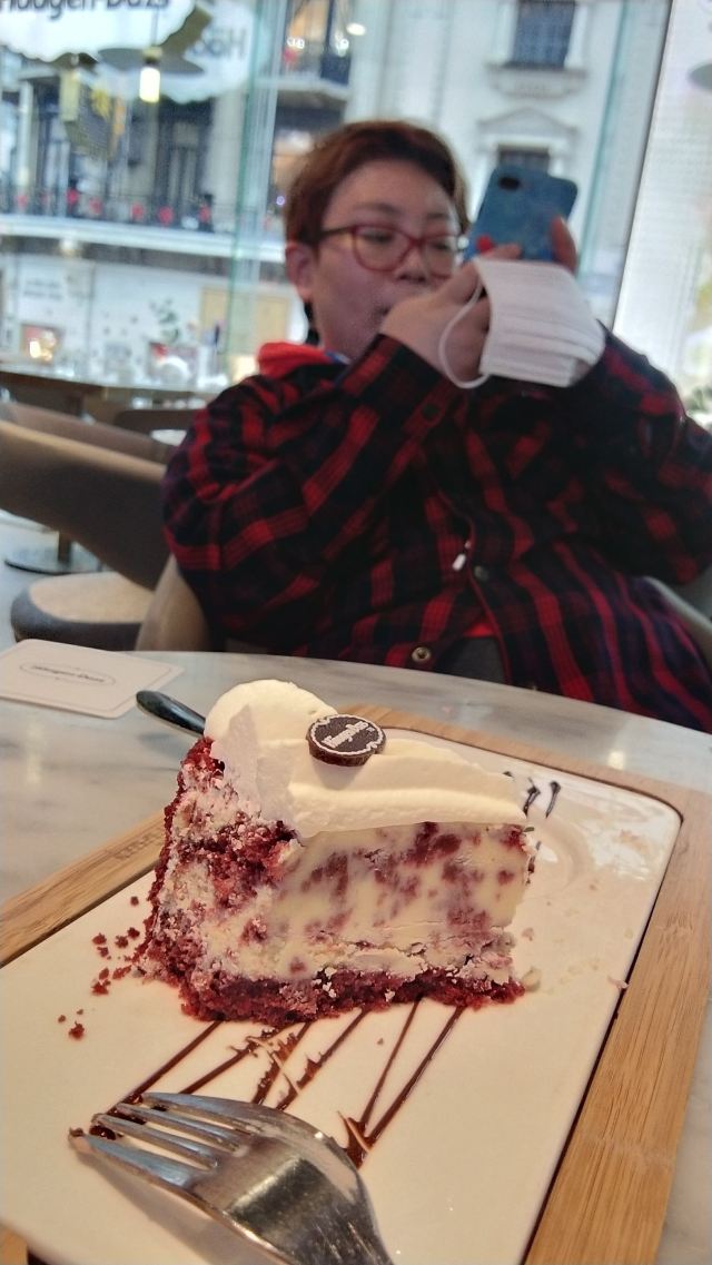 Hagendasi (gongyuan)时隔八个月,我们又约午晚饭和下午茶了,我们都厌烦YiQing的反复,我们都不怕现在变异得越来越弱的BD。 下午茶选在哈根达斯,以前的约饭日也曾选过几次,不是在这家店罢了。一人一块红丝绒蛋糕和一个冰淇淋球,冰淇淋都要的巧克力口味只是我的那款里面有巧克力酱,好像比闺蜜选的贵两块钱。认识12年的我们边吃边聊,不聊八卦实事,只聊彼此。 冰淇淋依旧好味道,口味确实没得说了,蛋糕差点意思,可能下次选蓝莓芝士吧,可以提前买券,能便宜几块钱,能省必须省。 我们普通人在一生中会遇见很多人,有些一开始以为可以和自己走到最后,但那只是以为。有些人我以为会是一生的朋友,但最终我们不再联系。即使是不甘是不舍的,该删的我也会删了。我讲话直不拐弯我情商低,可我依旧喜欢自己的真诚热情,喜欢自己没有虚伪的对待过每一个人。