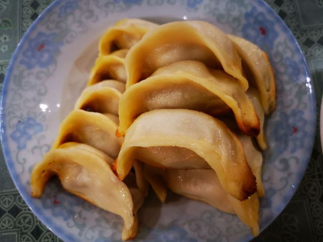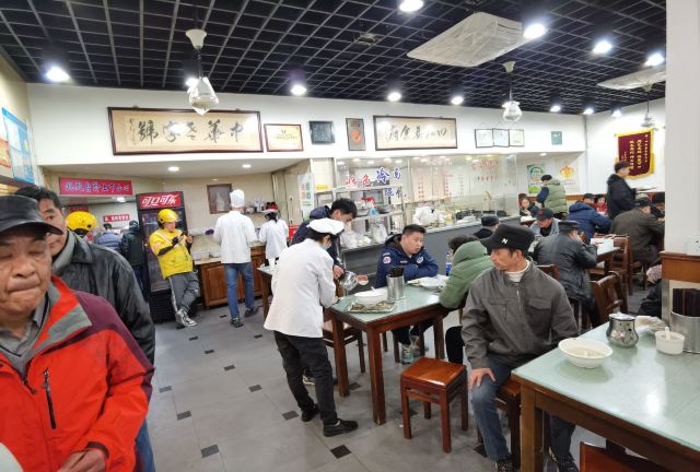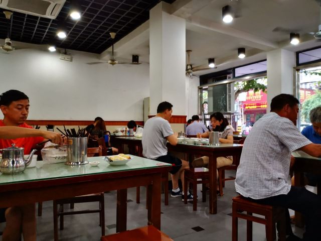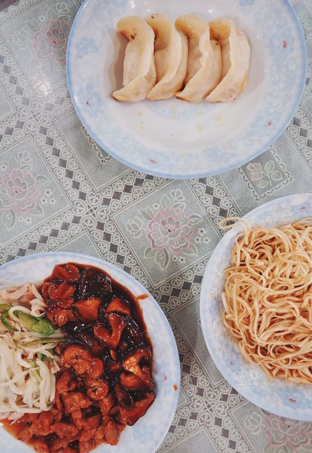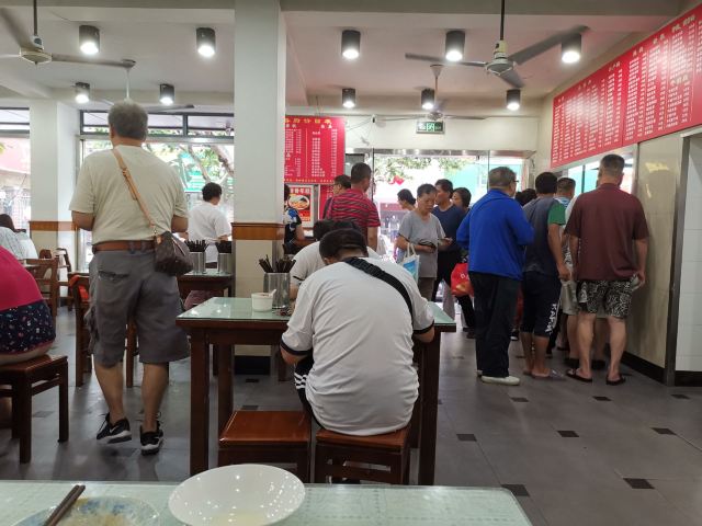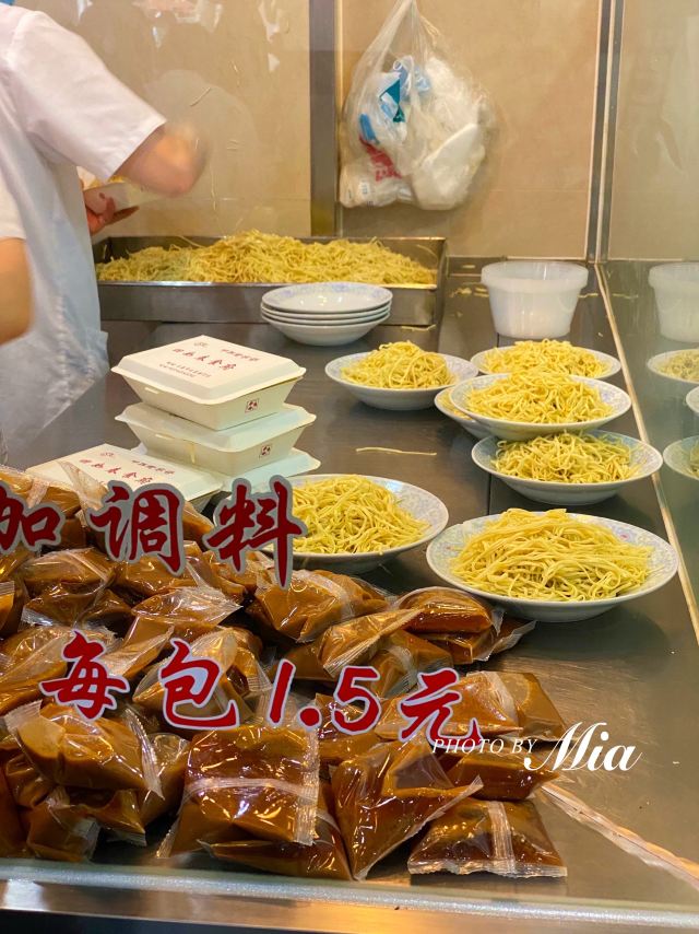 D了个Y大热的天 小小的店 排队排到大门口 来吃的基本都是附近熟客 打包的 堂吃的 熟门熟路 大家都按既定的方向走 点单 付款 排队 拿面 有条不紊 秩序有序 冷面跟锅贴是绝活 早饭吃的晚了 就点一份小二两的冷面 这里的浇头不少 那就来五份都尝一尝 面是那种细细扁扁的 吹的很好 不僵不硬不结块 花生酱 醋 酱油是标配 一个都不能少 自己端来拌一拌 再拌一拌 爽滑自在 浇头做的很本帮 口味上总体都比较平和 不会很甜很咸或是很辣 配上一杯店里的冰镇绿豆汤 简直绝配 不过这环境嘛 哪儿哪儿都是人 排队的 等位的 感觉店里比室外都要高几度 有条件的还是建议打包或错峰