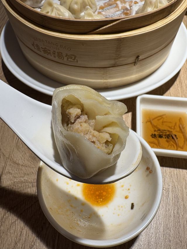佳家汤包在上海是超有名气的汤包,他家所有的汤包都现点现蒸,现蒸现吃。引得很多人慕名而来,还曾经上过BBC的沪上美食推荐。佳家汤包皮薄得近乎透明,而且汤汁丰厚,馅料的份量也很充足。虾仁鲜肉味道够鲜,蟹粉鲜肉配上特制的姜醋味道也很棒。蛋黄鲜肉汤包馅料里蛋黄和鲜肉的比例达到一比一,皮还是保留了超薄的特点,蛋黄的模样隔着皮看得非常分明。