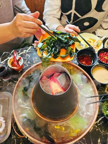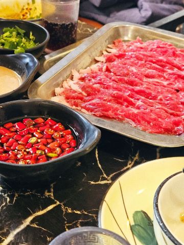 amydog🐏又解锁一家人气热气羊肉店 2024-1-26 🥩2024新年小群的第一次团建 因为是要在附近华山论剑 据说是附近很有名的热气涮羊肉店 生意也是眼睁睁 地好 不一会儿就座无虚席 【环境】 想到了以前的乍浦路饭店 各种错层搭建的感觉 左 右都各有一部陡峭的小楼梯 上去4,5个小桌 进门的 一楼也有几张桌子 环境还是满恶劣的 说实话 干净 卫生也肯定是没有的 【口味】 白汤羊筋锅底 68,朋友点的 汤底里的羊筋有点老 而且乱七八糟的配料有点多 显得汤有点脏了 现切羊肉 蛮好吃的 58还是68忘了 不过除了现切 羊肉 其他点的牛肉这种就很一般般了 调料比较有特色 朋友是常客 另外点了两碗辣椒油 倒是第一次在热气羊肉火锅店里看到 🅿️附近停车应该是很因难的 特地过来没必要