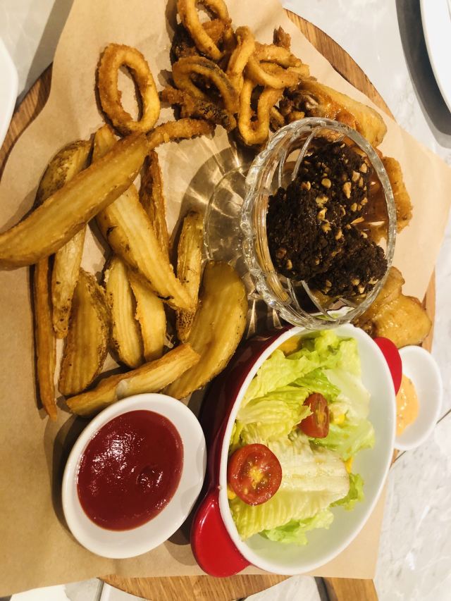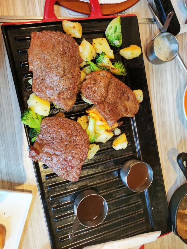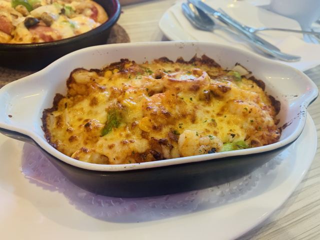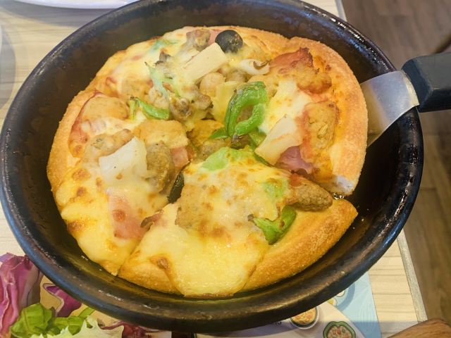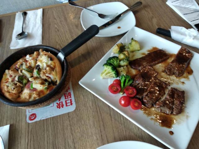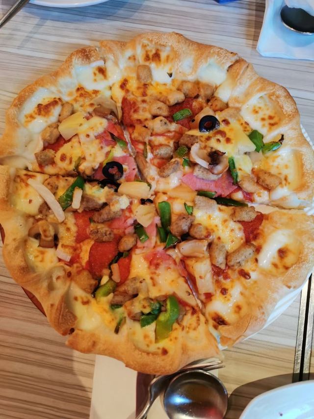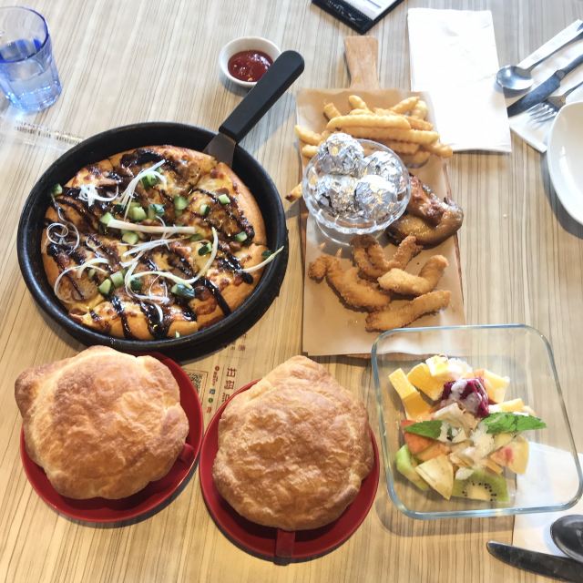 意面,鸡翅,超级至尊比萨(芝心普通装),比萨,抹茶雪域蛋糕,牛排,鸡茸蘑菇汤,酥皮奶油蛤蜊汤,冲绳黑糖爆浆蛋糕,新春小食拼盘,小吃拼盘,抹茶雪域,水果土豆沙拉,照烧鸡肉炒饭,法式红酒焗蜗牛,皮蛋瘦肉粥,芝心比萨,小不点儿童餐,皇后黑松露鸡腿肉比萨,脏脏系列