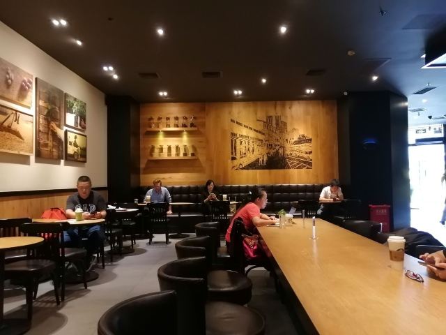 这家星巴克位于西郊百联购物中心一层,室内室外都有座位可供顾客休息,室内面积很大,环境很好,偏暗的风格让人在咖啡香气中放松自我。用啡快功能点餐,不用排队。用九颗星兑换了一杯中杯咖啡,服务员耐心的指导如何在app上兑换,态度很好,味道也一如既往的好。