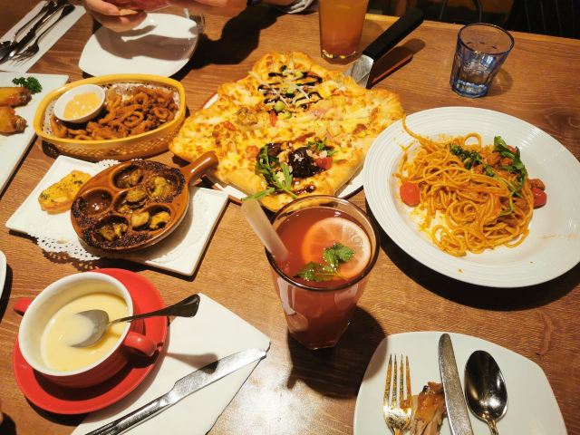牛排,鸡翅,超级至尊比萨(芝心普通装),意面,澳洲西冷牛排,超值多多分享拼盘,酥皮奶油蛤蜊汤,英伦下午茶套餐,抹茶雪域蛋糕,小吃拼盘,冲绳黑糖爆浆蛋糕,北美特色枫香烤翅,鱼籽炸虾球,炙烤澳洲牛肉比萨(大方薄底),照烧鸡肉炒饭,烤鸭披萨,下午茶悠享餐,普装铁盘超级至尊,新奥尔良口味披萨,美式冰淇淋烤布朗