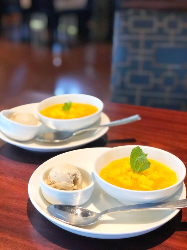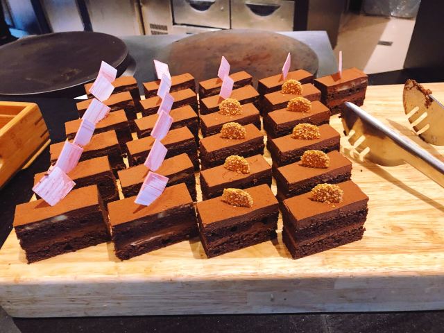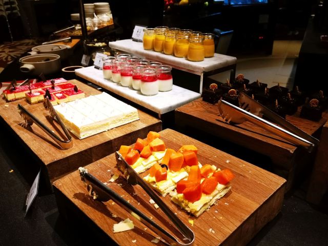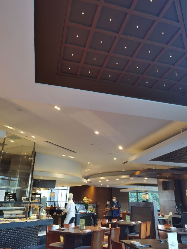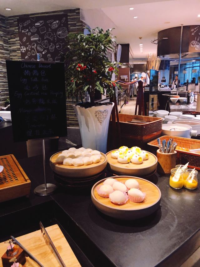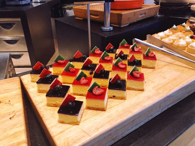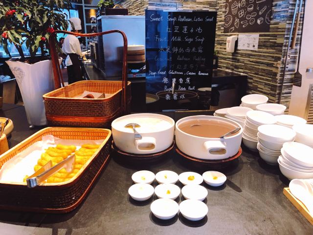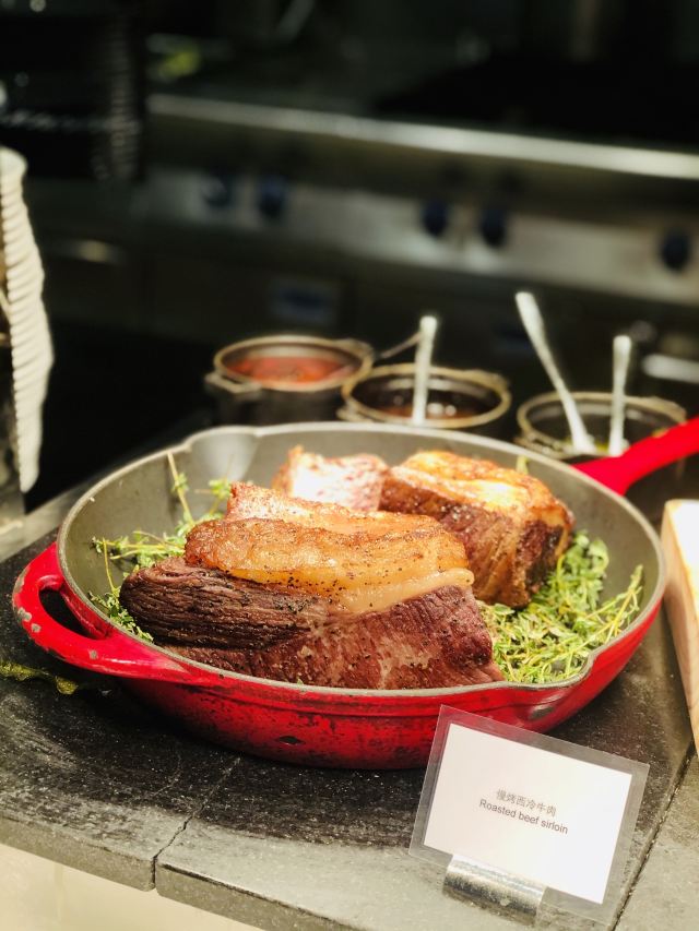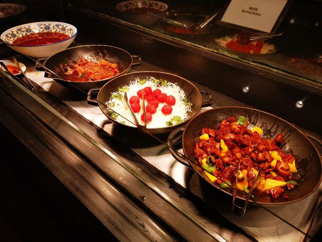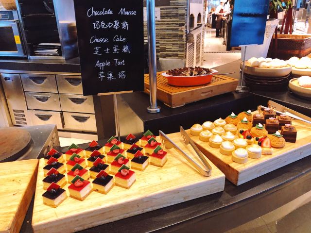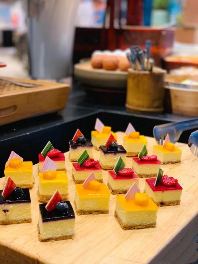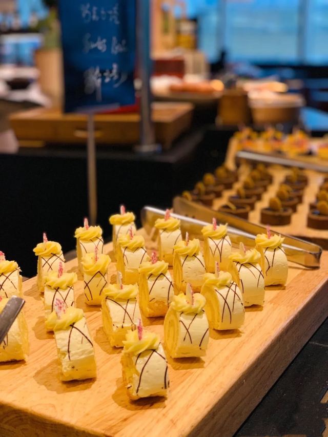 选我当校长一个老忘菜名的菜鸟超认真的哔哔哔~ 【口味】3🌟,不能更多了!自助餐菜量很大,中西东南亚都有一些,但200左右的自助,谁比它量小了呢?主要菜品1:小龙虾🦞2🌟,跟那种啤酒节畅享吃的差不多,甚至还不如!腥气很重,白灼跟酒味(忘记叫啥,反正摆在一起的,有酒味)的共8-9个吧,超一半是肉质粉的,感觉不新鲜,更别提什么Q弹肉质……长蟹脚(图中没有,忘拍)也不大新鲜的感觉……图片里有大大的红色蟹脚、炒虾也一样,都不怎么滴;主要菜2:叉烧、烤鸭:可以,烤鸭酱汁好吃,清爽不油腻,有种玫瑰花酱汁的感觉,酸酸甜甜,肉属于水一点、嫩一点的口感,跟薄片那种吃法不同口感不同(他家新大陆的烤鸭好);主要菜3:惠灵顿牛排简约版,一言难尽,总之不推荐,还是去专门吃牛排的地方吧🤷♀️ 好吃的:甜品有10种,提拉米苏(如图第三排最后一个)入口即化,唇齿留香!如图第二排第一个,不知道是蓝莓还是草莓夹心的好吃,如图第二排第三个,油炸的芋圆?外面是面包糠脆脆的,中间面粉软软的,里面是流心馅儿,很好吃!其他甜品也都在线!早上的自助餐里也会有几种的哦!这应该是他们的特长!另外好吃的是一个东南亚炒饭,可以看图片,有蟹籽的那种,摆放在东南亚区,不是中餐区哦 【环境】说实话,二楼的窗边也就那样;因为楼层低,没景。室内是西餐厅的摆放,就是酒店式没啥特别,不过这种光线拍照片食物看上去都很好看。环境肯定是楼上的餐厅更好,或者去顶楼点一些东西也很好 【服务】服务好的哦,给人专业的感觉,我是订房间的时候订好了晚餐时间,有带入位子的服务员,还有时不时来收一下骨碟的,态度都很好。 【总结】:吃自助餐不如买这家的下午茶,推荐🌟下午茶🌟 (268双人的那个就是2层的香芸餐厅,没有景;时髦餐厅有露台,会员价220的,可以拍照)我入住时间太晚了,错过露台下午茶,自助餐双人400多(含在住房套餐里) 最适合人群:大胃王,喜欢一次性尝多国风味 不适合人群:小胃,菜不厌精的刁嘴(像我这种) 提示:买茂悦的餐,要看具体的餐厅