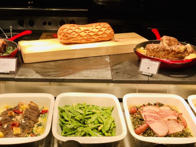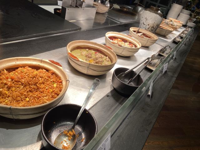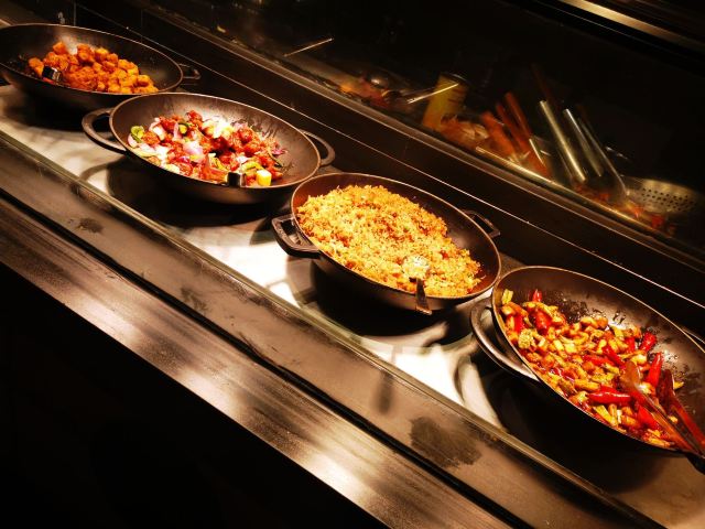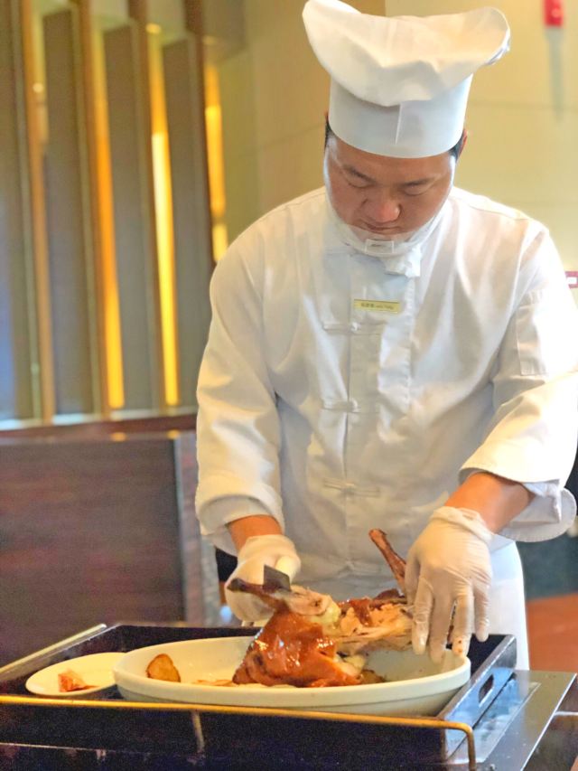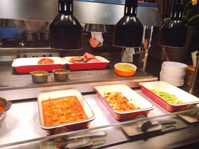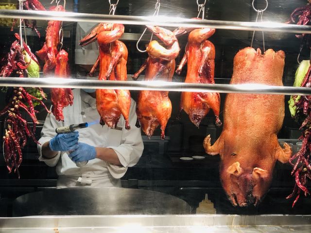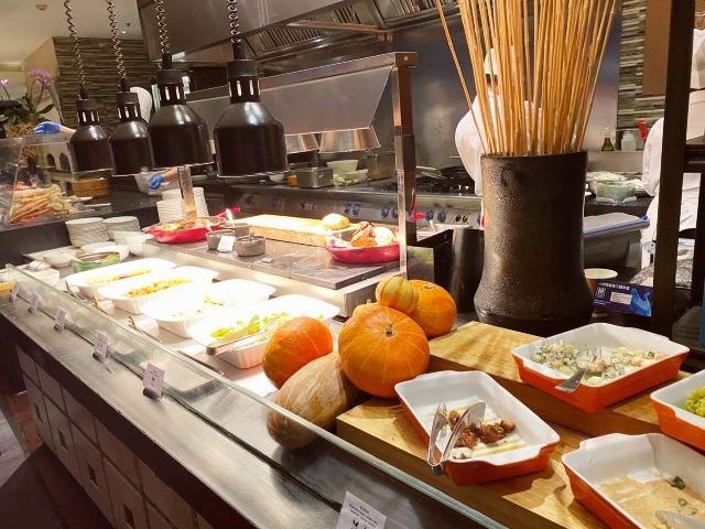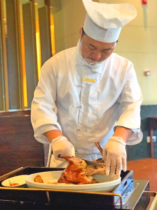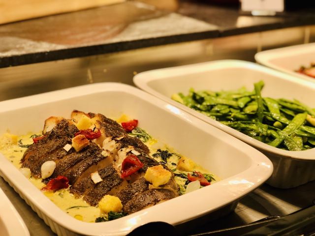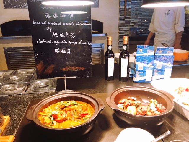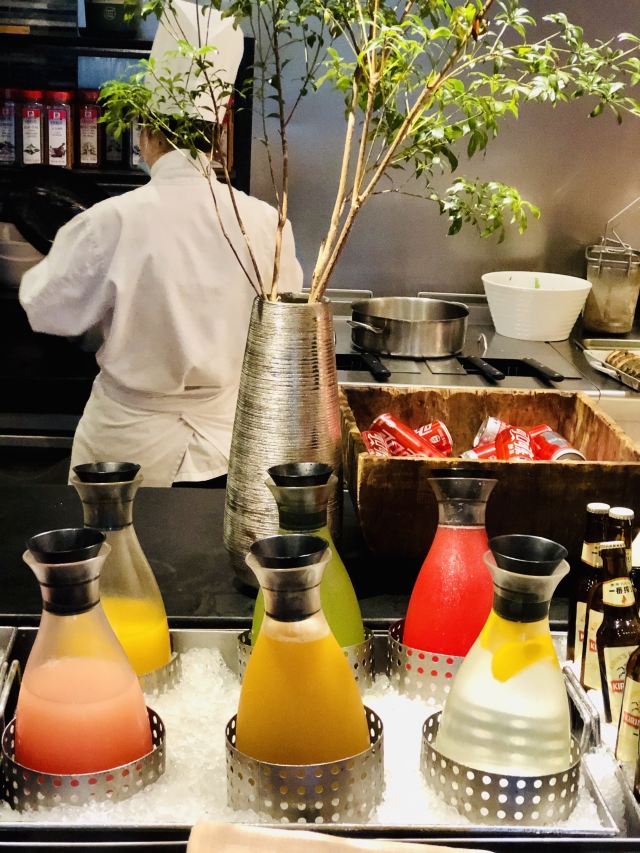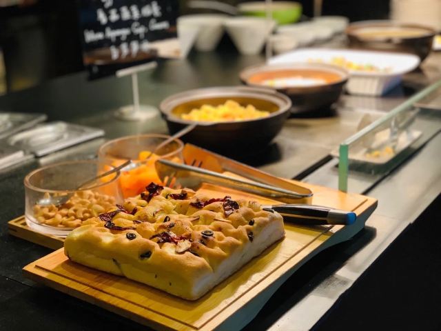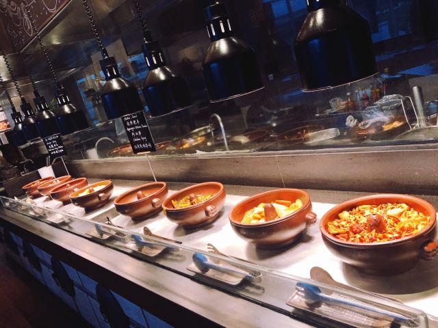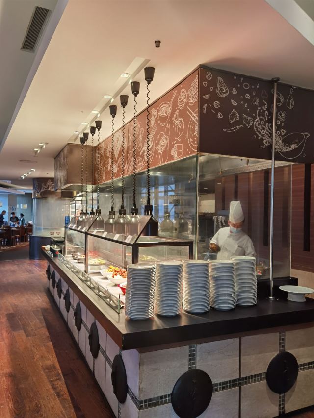 上海外滩茂悦大酒店香荟餐厅每道菜肴均由厨师当场烹制,开放式厨房的现场料理台不断提供最新烹饪的美食,厨师还根据要求为客人配切烧腊烤鸭,现场切片意大利火腿,除了西式料理,更有中式点心,虾、蟹等海鲜。