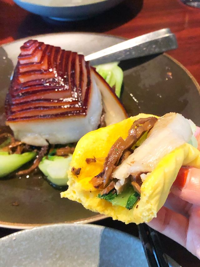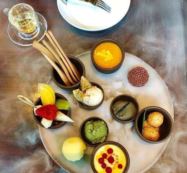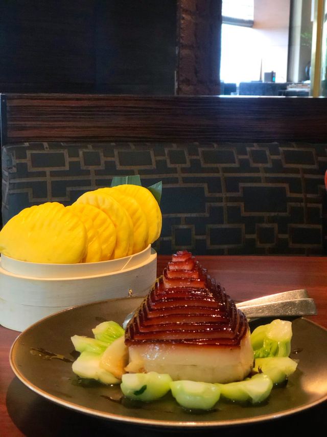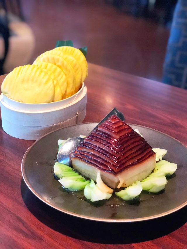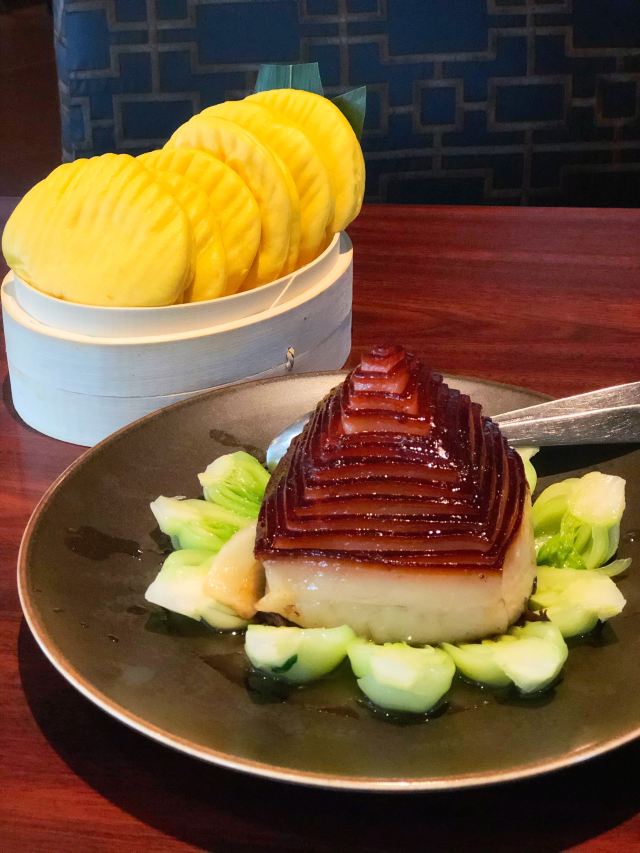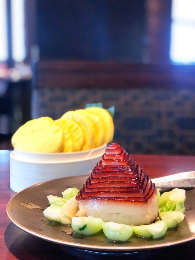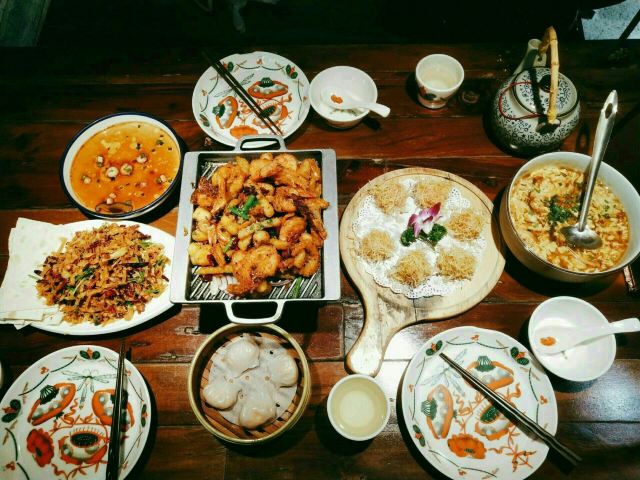 传统北京果木烤鸭,甜品拼盘,招牌石锅鳕鱼,清炒蟹粉配芝麻饼,扣肉,绍兴鹅肝,宫保明虾球,蟹粉狮子头,招牌锅贴,牛肉粒,酒香油爆虾,五粮液炒豆苗,椒盐鸭架,老上海熏鱼
