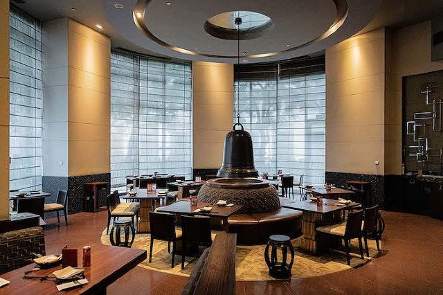 餐厅位于酒店之内,以深棕色系为基调,打造出沉稳大气的环境,精巧的装饰别具韵味。这里主打本帮珍馐,设有开放式厨房,现场烹饪各式佳肴,围桌而席可体验互动式的用餐的乐趣。这里的北京烤鸭值得一提,采用传统壁炉烤制,入口香酥鲜嫩。