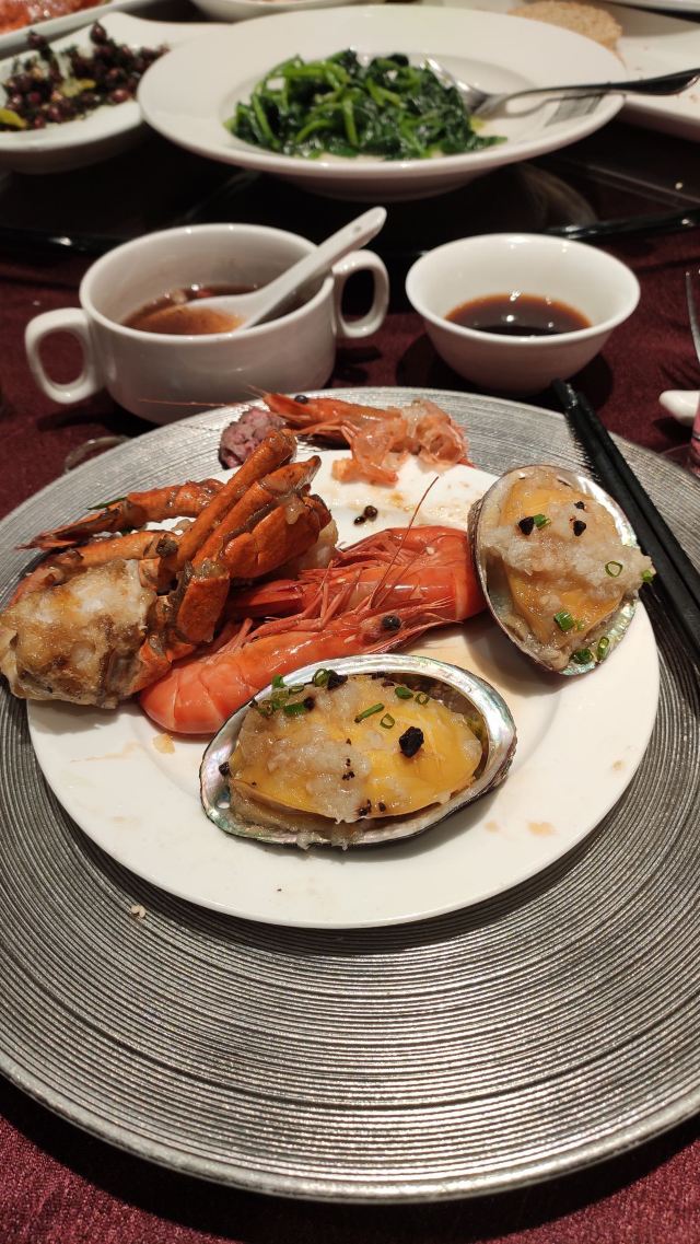 这家是在星级饭店里的中餐馆,包房名字都是以金字开头的,我们定的包房是金樱花。整个酒店装修,到处都体现电影🎬方面的素材。八个人的房间挺宽敞的,有备餐间但没有洗手间。服务也不错,还可以免费停车3小时。 海苔花生 因为我上班去的晚,朋友们都帮我留好了,九孔鲍肉蟹,但是这盘海苔花生我超爱 蟹壳王 脆脆的薄薄的咸咸的也是我的菜