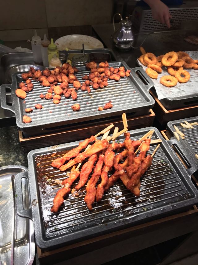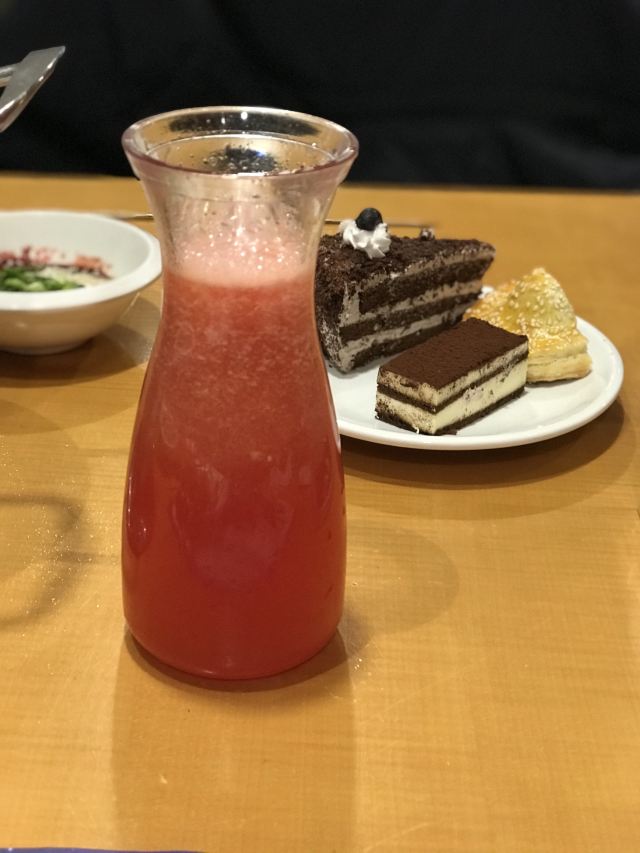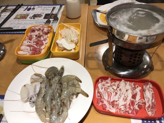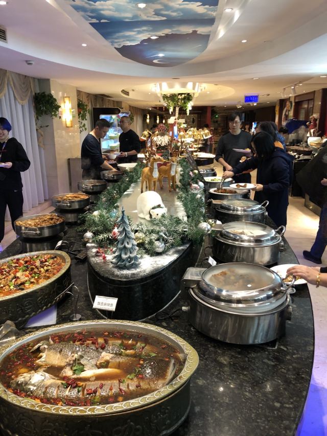 梦之砂亲戚请吃饭找了家自助餐,这家店以前来过所以还算熟门熟路。如果第一次来还是蛮难找的,和一座烂尾楼连在一起,自助餐餐厅开在人家饭店的二楼不问都不知道。店里菜品不算很多,一桌一个小火锅,涮的肉感觉不是很新鲜基本都在涮海鲜,其他都还行。