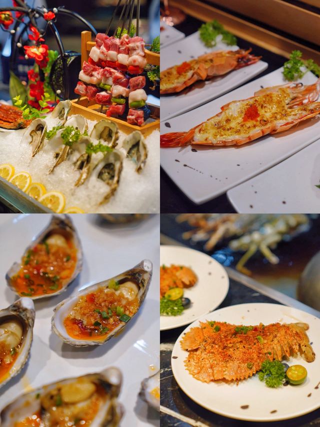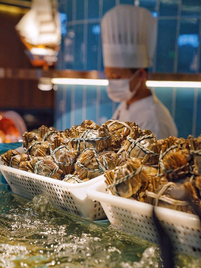魔都海鲜自助新晋王者空降南丰城👏 应季海鲜秀色可餐 海量美味幸福爆棚 来🌊汐明🌊可以实现日料海鲜双自由 真自助!真畅吃!坐下5分钟就回本✅ 吃自助当然是要怼着贵价海鲜按盘拿 螯虾🦞生蚝🦪都是肉眼可见的鲜美 有着“虾中宾利”美誉的新西兰鳌虾 硕大浅橙的鳌虾 醒目条纹格外养眼 一张嘴就被清甜细腻的口感所折服 鲜气十足的刺身档补货超及时🍣 甜虾、北极贝、三文鱼、金枪鱼 平时在日料店里动辄上千的食材 这里统统畅吃❗️畅吃❗️畅吃❗️ 无时不刻释放巨大魅力的铁板烧区 香煎鹅肝&雪花和牛🥩丰腴又多汁 来得巧还能观看一场美食SHOW🔥 还有硕大的西班牙伊比利亚火腿🥓 端盘端到手酸💪拿菜拿到手软👋 光是把各餐区走完就花了近10分钟 一场放题盛宴的完美收尾 自然是要交给女生的第二个胃 甜品任点任吃无限续🍧🍨 这朴实无华且平淡的快乐 我一点也不酸🌝