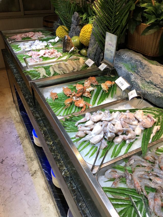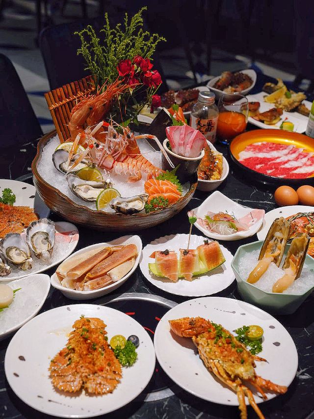 铁板牛仔骨,鲷鱼刺身,刺身类,黑椒牛排,三文鱼刺身,风味炒土鸡,铁板类,冰淇淋,甜点,烧烤,火爆辣鸡香蒜披萨,黑蒜烤生蚝,毛蚶,鱼翅盅,松露蒸蛋時令海鮮,蟹脚,长脚蟹,水果,巧克力喷泉,冰激淋,甜虾,帝王蟹脚,小蛋糕,三文鱼,麻辣烫,香蕉牛奶,扇贝,海鲜,冰激凌,小龙虾,羊排
