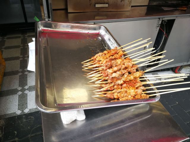meteorakira这家烤肉串店开的年数也算是比较长的了,生意一向都很旺,要是正好路过的话我就会排着队买上几串羊肉串吃吃,他们家的羊肉串肥瘦相间,吃起来很香,口感也挺不错的,比在街上卖的值得信赖,比较卫生。