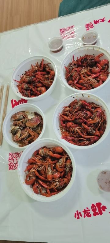 凹凸曼和小伙伴🍢夜宵推荐:复茂小龙虾大闸蟹烧烤 🌚店铺待机时间:10:00~02:00 🛵外卖到位时间:40分钟送达。(订单金额满300起送) ⌚️排队时间:堂吃都坐不满,不用排队。 🧡推荐理由: 最早一家记得开在复兴中路上,而后就一发不可收拾,老字号的小龙虾店。 🌟推荐菜品: 🔸 「复茂招牌手抓虾」¥168,龙虾个头中等吧,去虾头版本,肥美入味。 🔸 「十三香小龙虾中虾」¥168,微辣,也是复茂的招牌。 🔸 「龙虾泡饭」按照人均150的消费线,靠小龙虾吃饱有点难,还是建议搭配主食了。龙虾泡饭鲜美诱人,¥25的价格也比较亲民。 🔸「肉丝炒年糕」应该是用猪油炒的,就是很有本帮炒年糕的感觉,也是一道夯实的夜宵菜。18元就可以拥有。 🖇不得不提: 🔹随着小龙虾的最佳赏味季的到来,复茂的小龙虾价格也是节节攀升,一路看涨,想实现小龙虾自由有点下不去手。不过好在配菜的价格还是比较公道的。 🔹中虾和大虾当然会有个头明显区别,不过中虾就蛮不错了,细水长流也蛮香了。