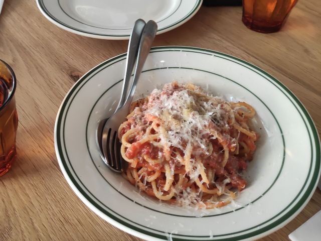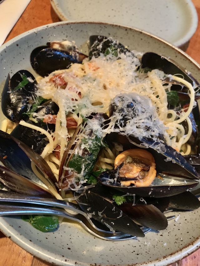 La Strada(AnFu Road Dian)╮╮╮ Ⅶ☽ 卍 ╭╭╭ 谢谢女朋友请的晚餐,赞同她的精准点评: ✨✨✨✨✨✨✨✨✨✨ ✨✨✨很Boutique哦✨✨✨ ✨✨✨✨✨✨✨✨✨✨ 小雨 26-30度 [环境] 话剧中心不远处,安福路195号,一楼好位置,面积刚好,不大但也显得温馨了,特别是坐在了窗边,看着天色转暗(缺点的话,不接受预订,辛苦女朋友请吃饭还要早早占座) [服务] 服务员们也都客客气气,穿着白衬衫制服,看看也舒服 女朋友来过几次,点的菜品深得我心 「青口贝意面」 青口贝量多的,意面的拉丝浓郁,火腿肉、罗勒的融合口味更层次丰富,酱汁奶白,很香浓 「烟熏三文鱼披萨」第一次尝试到这种做法薄薄的底,粉嫩的烟熏三文鱼微热的刚好,老了成鱼块,冷了像在西式正餐,总体感受恰恰好 隔壁二桌,各坐一位歪果仁,一人点着一份大披萨,很享受的感觉,下次打卡试试 一个门牌号,几家餐厅的入驻,各有特色菜系,多年下来大家生意都好,品质是关键,㊗️各家和气生财、生意兴隆