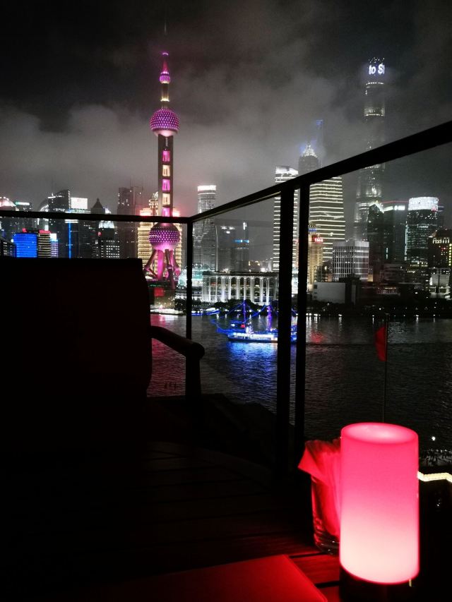 D了个Y食在这里# 吃饱喝足 乘着天色渐暗 对面陆家嘴早已霓虹闪耀 一派海天盛筵之像 回房间猛一顿拍 心满意足 说来也是奇怪 外滩真的是有这样的魅力 每一次来 每一次都想拍最好看的照片 虽然已经拍过了无数次 再来 还拍 依照惯例 要来楼上的BAR坐一会儿 半岛的view在外滩一线也算是可圈可点 疫情期间13层的米其林一星餐厅没有开 只单独开放了14层的露台 这个露台吧很火 来者络绎不绝 好在一早在房间里订好了位子 现在过来吹吹晚风 听听音乐 妥妥的 有景 有FEEL 再加点酒精的熏陶和音乐的熏醉 简直就是绝配 不过用清一色的柠檬水玻璃杯来装点格式鸡尾酒就有点不靠谱了 疫情期间 能简则简 当然可以理解 不过有些东西 灵魂之所在 简了 就没那个意思了 不信 你露台循环播放小苹果试试 这里有酒 你有故事么?