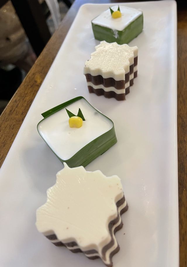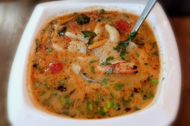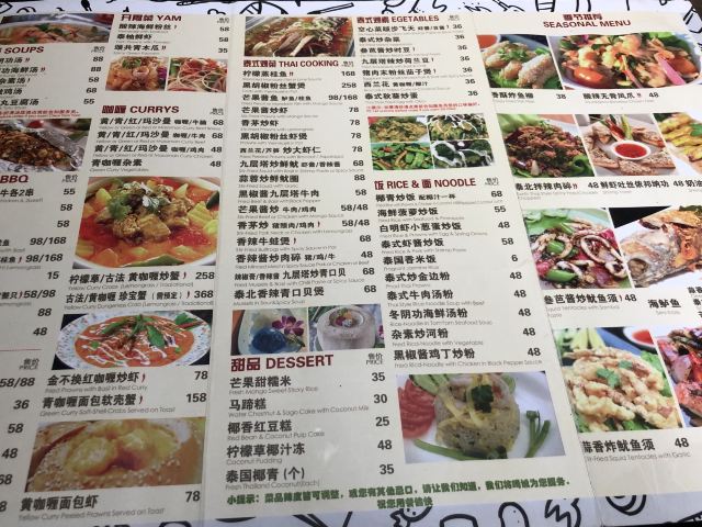 冬阴功汤,菠萝炒饭,柠檬蒸鱼,虾片,黄咖喱鸡,炭烤猪颈肉,月亮虾饼,虾酱空心菜,柠檬草椰子冻,黄咖喱炒软壳蟹,柠檬草烤鸡,冬阴功海鲜汤,椰汁西米糕,盐烤罗非鱼,青咖喱鸡饭,炭烧猪颈肉,青木瓜色拉,泰式炒金边粉,黄咖喱牛腩,泰国龙虾片,马蹄糕,招牌四拼